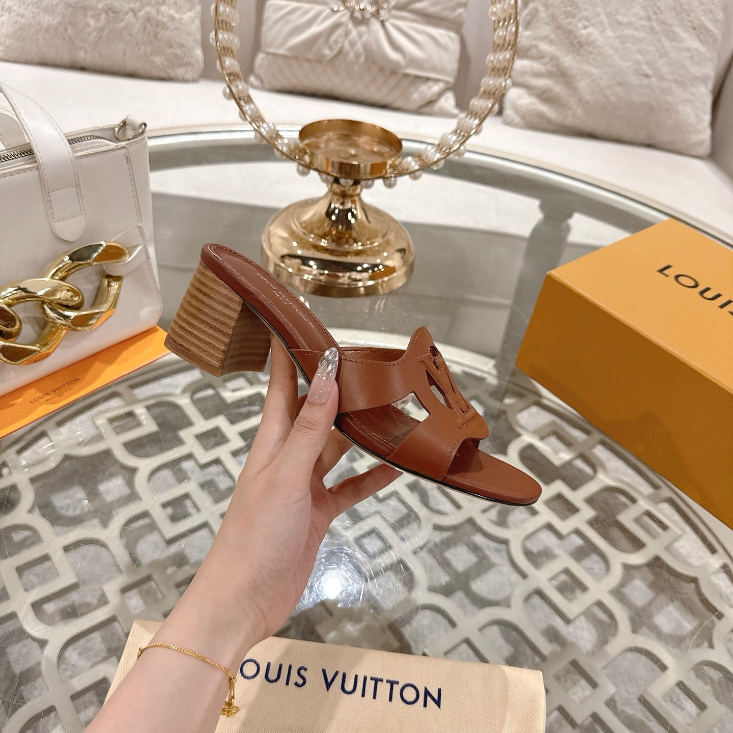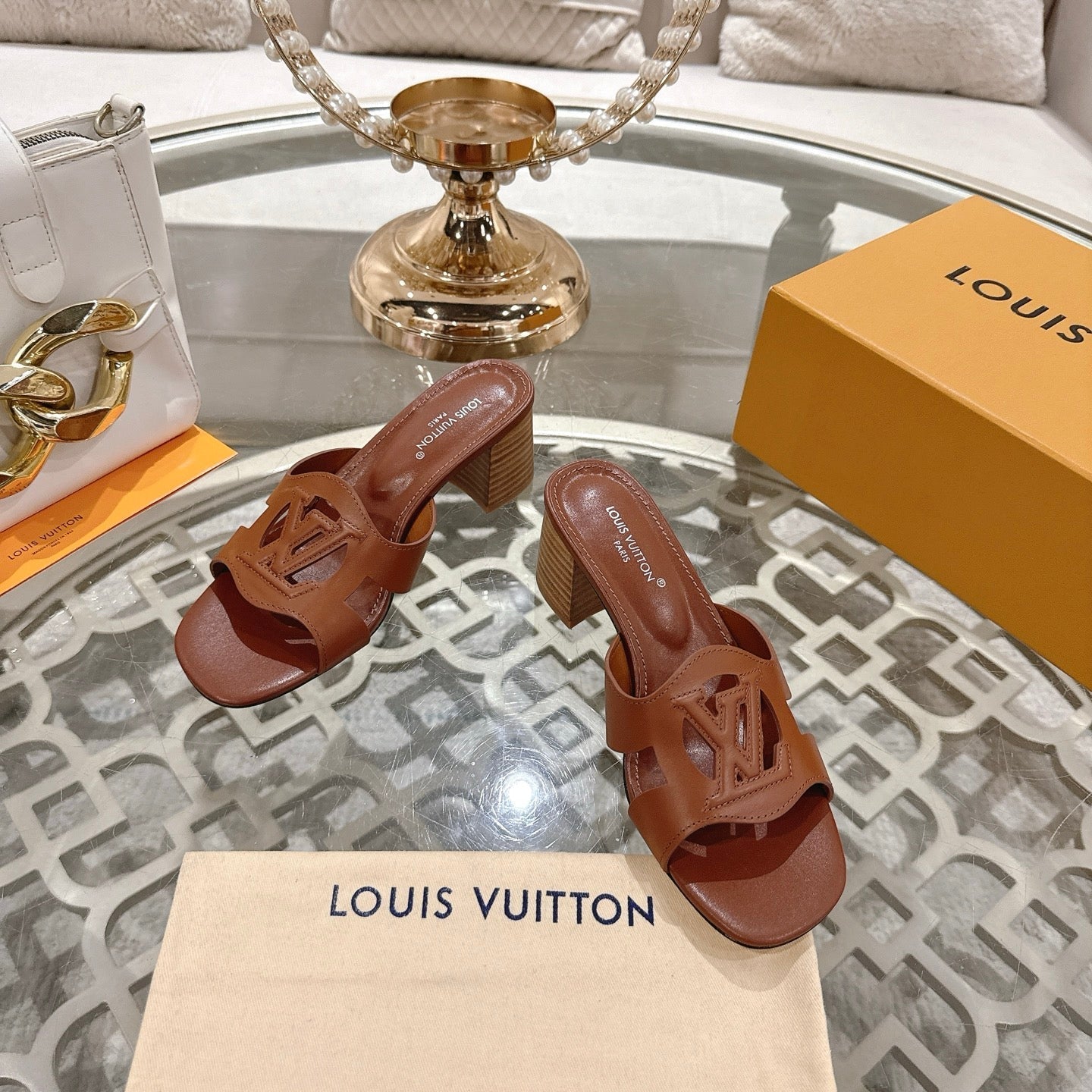 ISOLA HIGH 55 MM MULE IN PENNY BROWN CALFSKIN