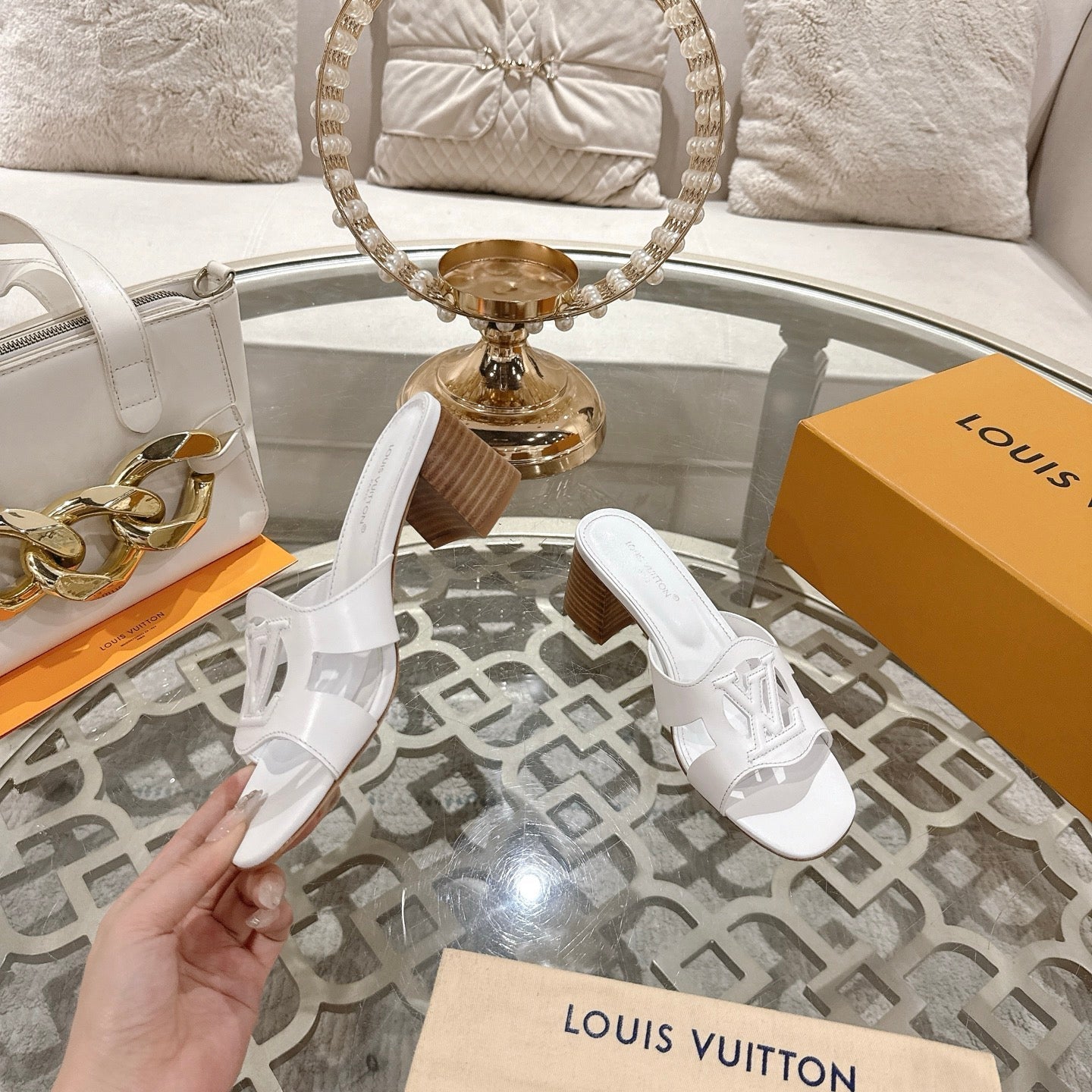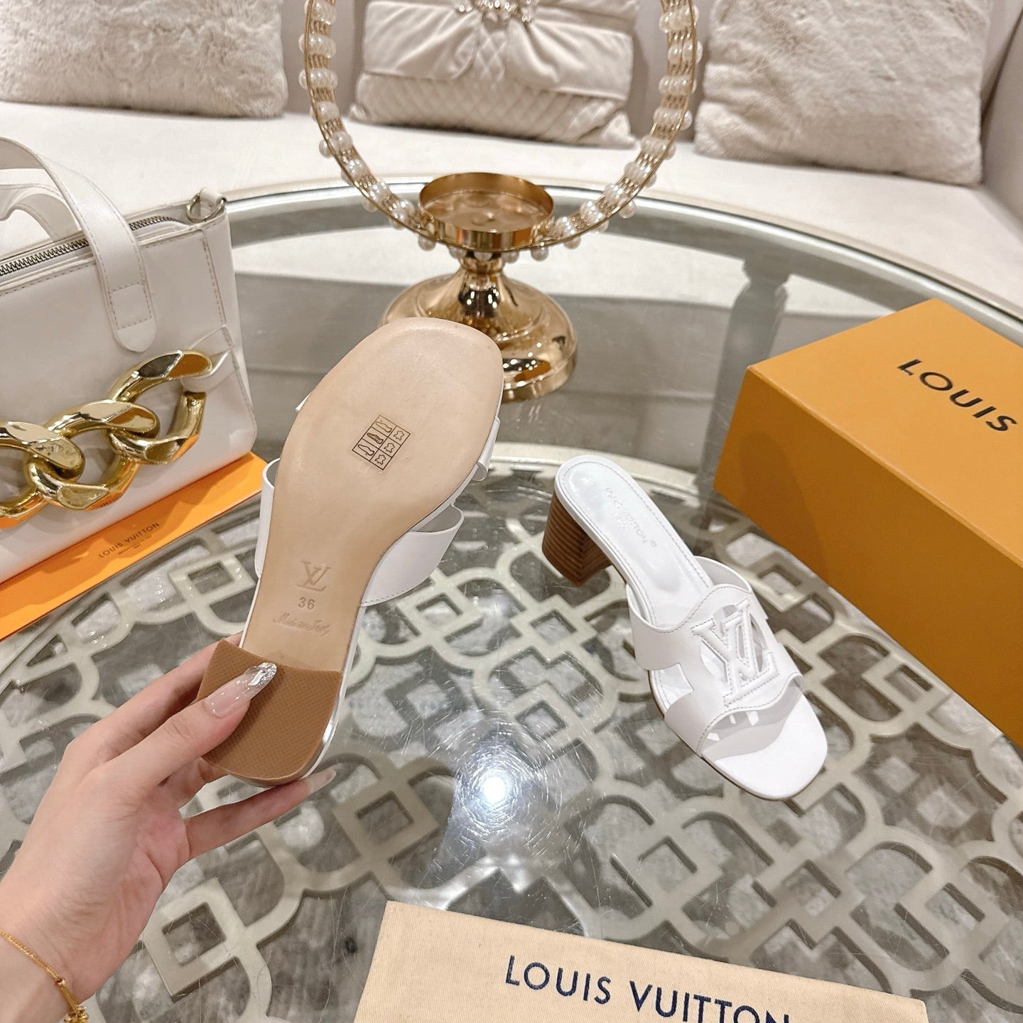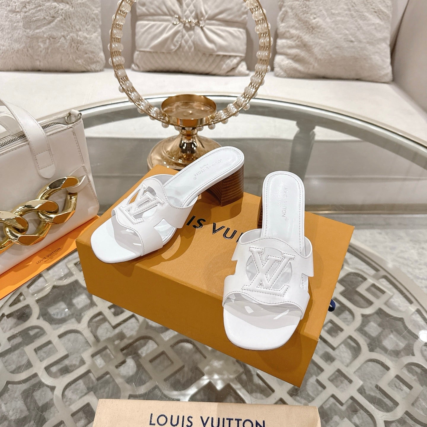 ISOLA HIGH 55 MM MULE IN WHITE CALFSKIN