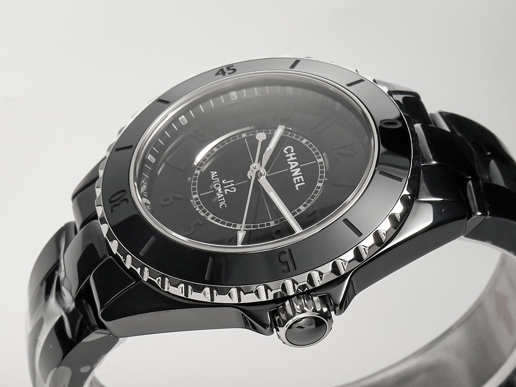 J12 Automatic Black Ceramic Black Numerals Black Dial White Steel Hands