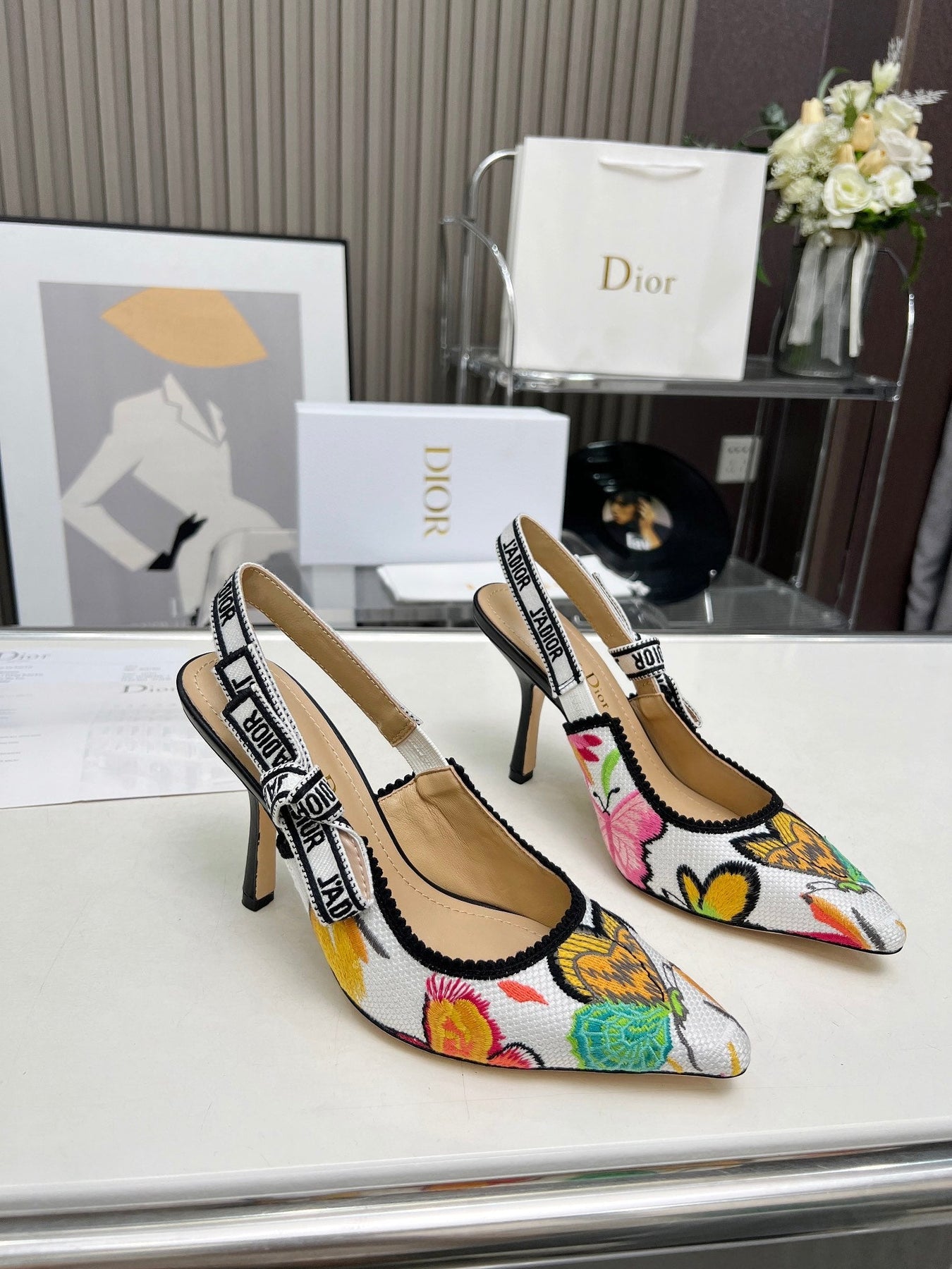 J'ADIOR SLINGBACK PUMP COLORFUL NATURAL RAFFIA AND EMBROIDERED COTTON 10 CM 130857
