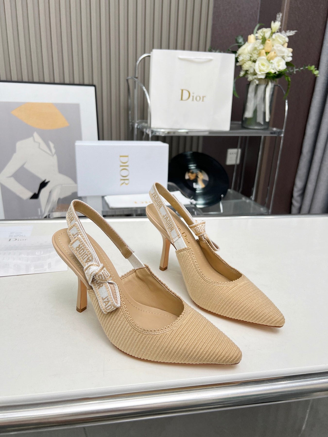 J'ADIOR SLINGBACK PUMP NATURAL RAFFIA AND BEIGE EMBROIDERED COTTON 10 CM