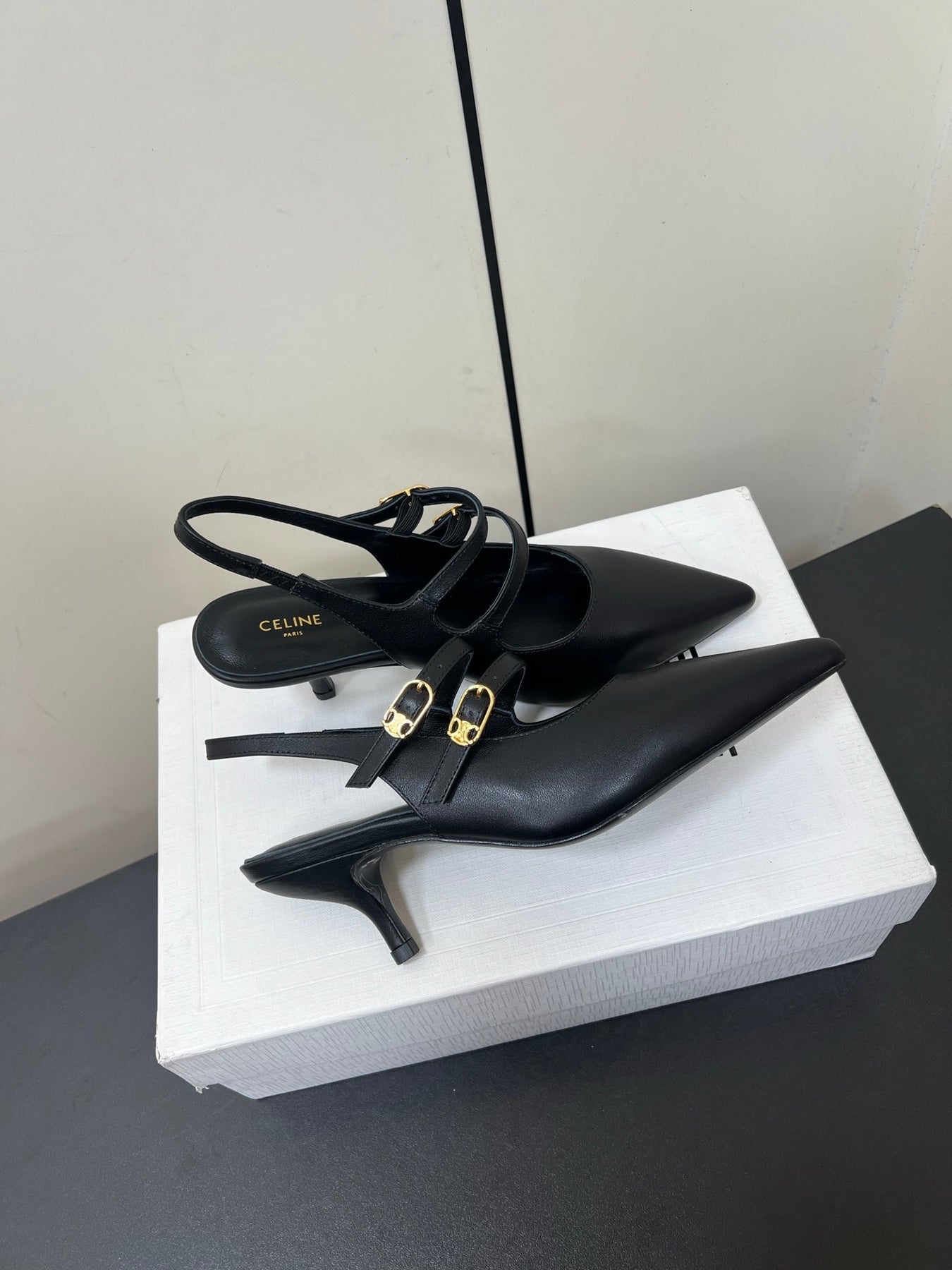 JUDY DOUBLE STRAP MARY JANE SLINGBACK IN BLACK SMOOTH CALFSKIN