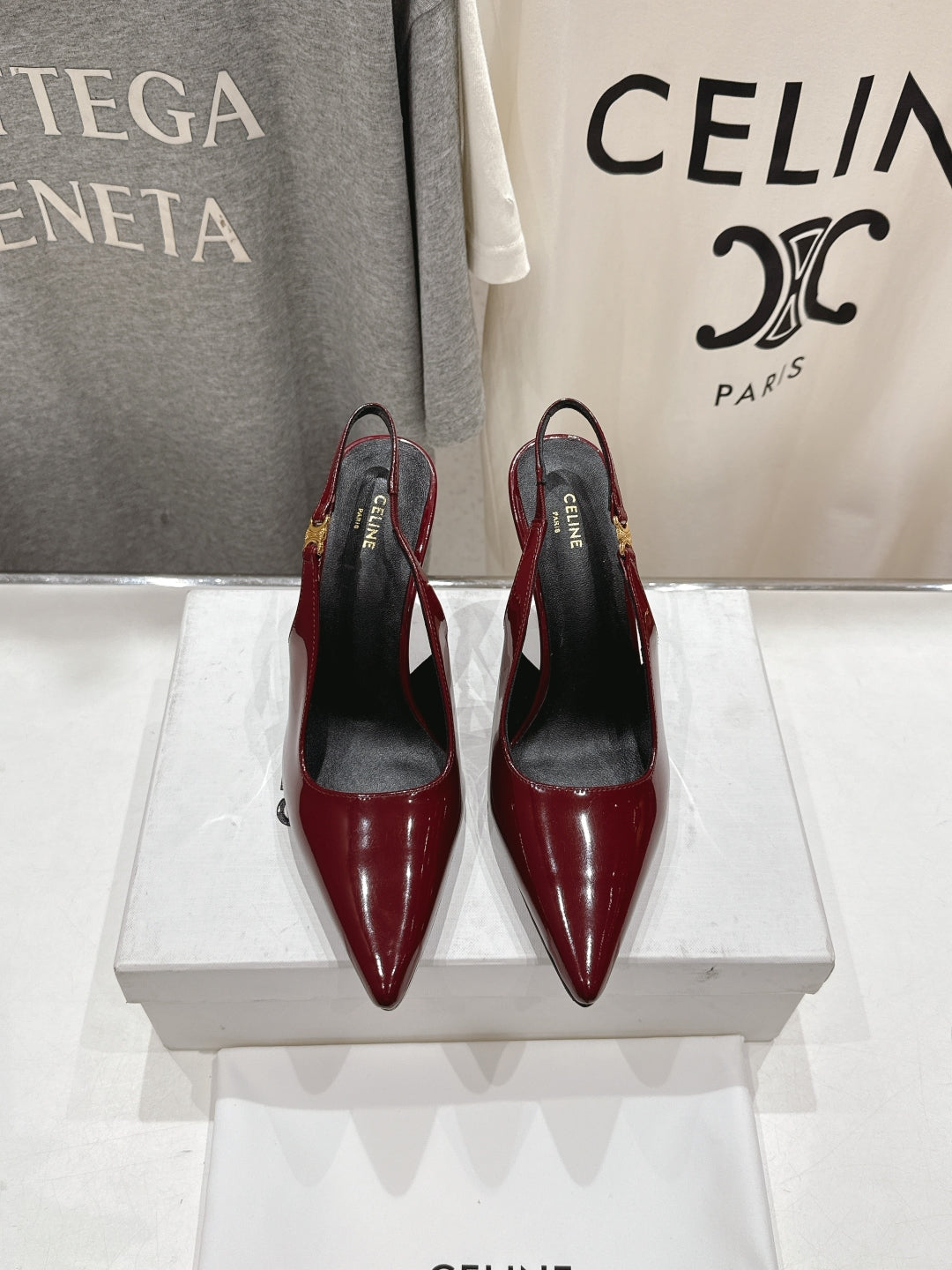 JUDY TRIOMPHE STILETTO SLINGBACK 75MM IN BURGUNDY RED PATENT CALFSKIN