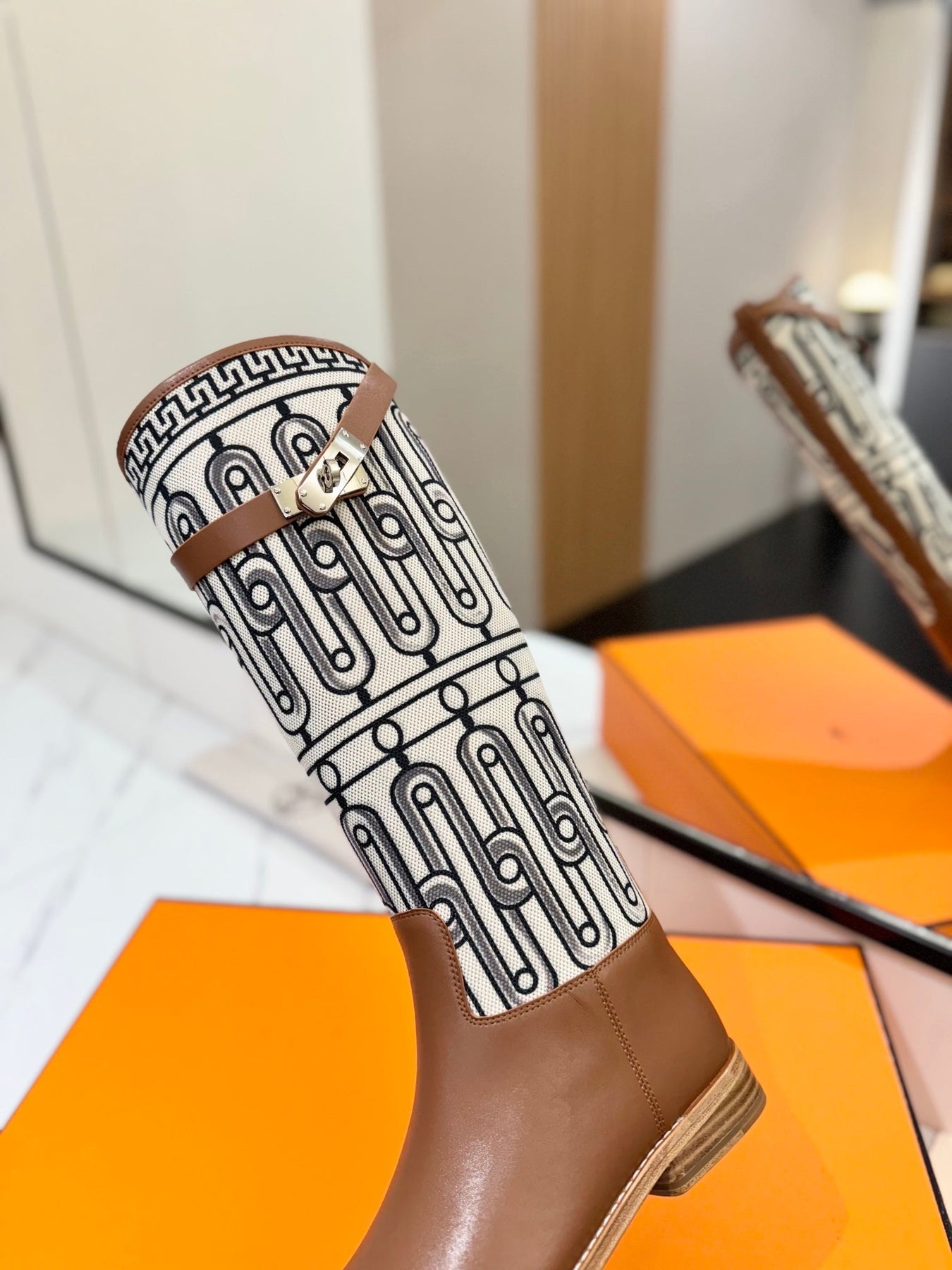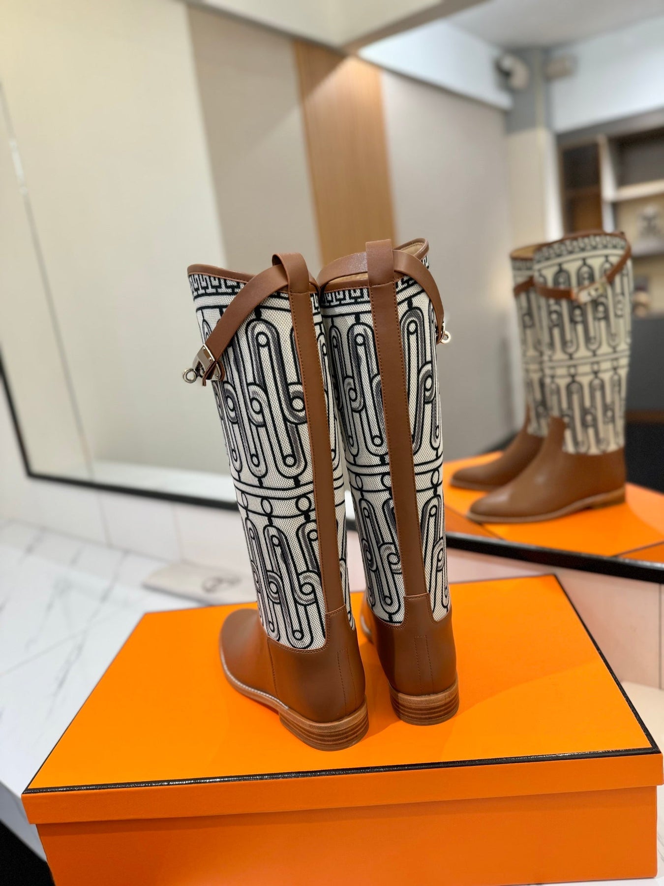 JUMPING BOOT 2 CM IN BRONZE BROWN CALFSKIN AND BLACK MIX WHITE FABRIC