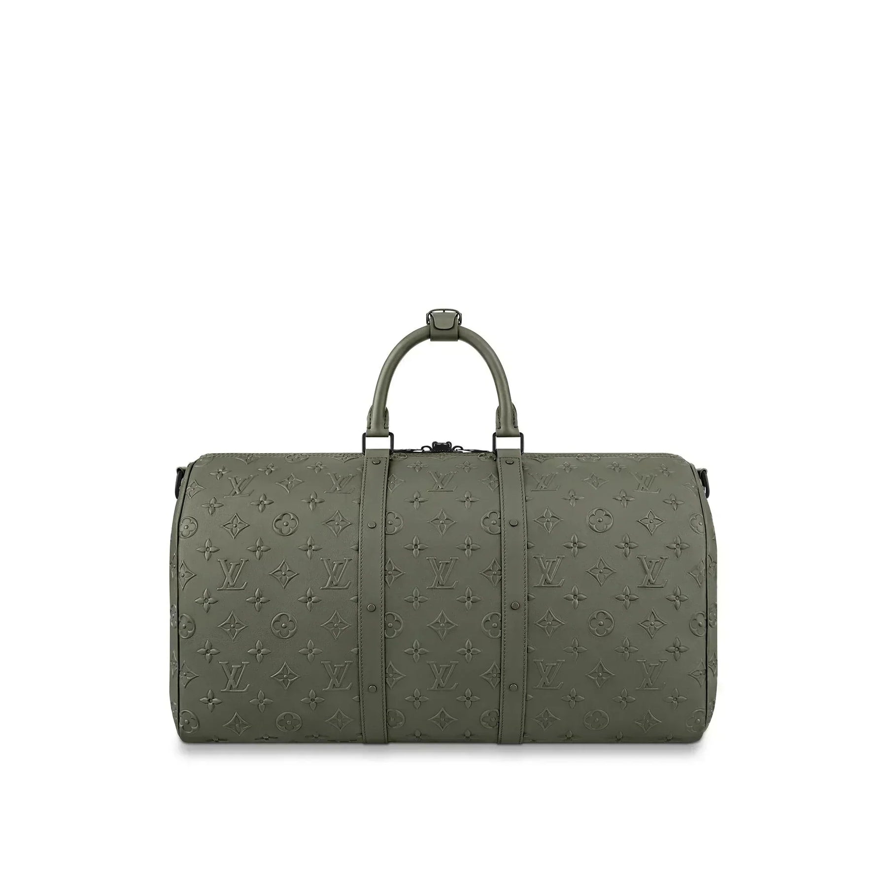 KEEPALL 50 BANDOULIERE KHAKI EMPREINTE LEATHER