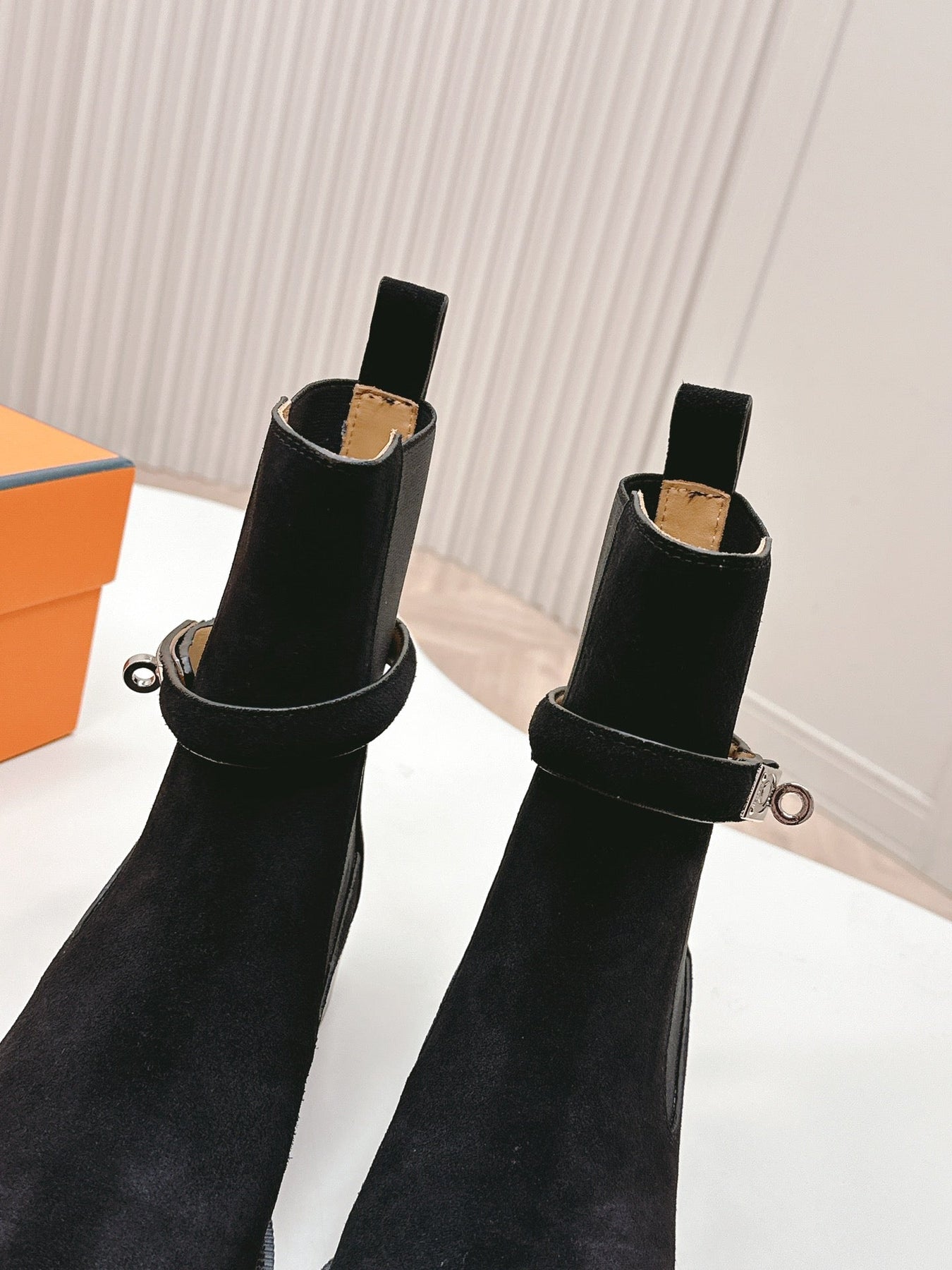 KELLY BUCKLE SHORT BOOTS IN BLACK SUEDE