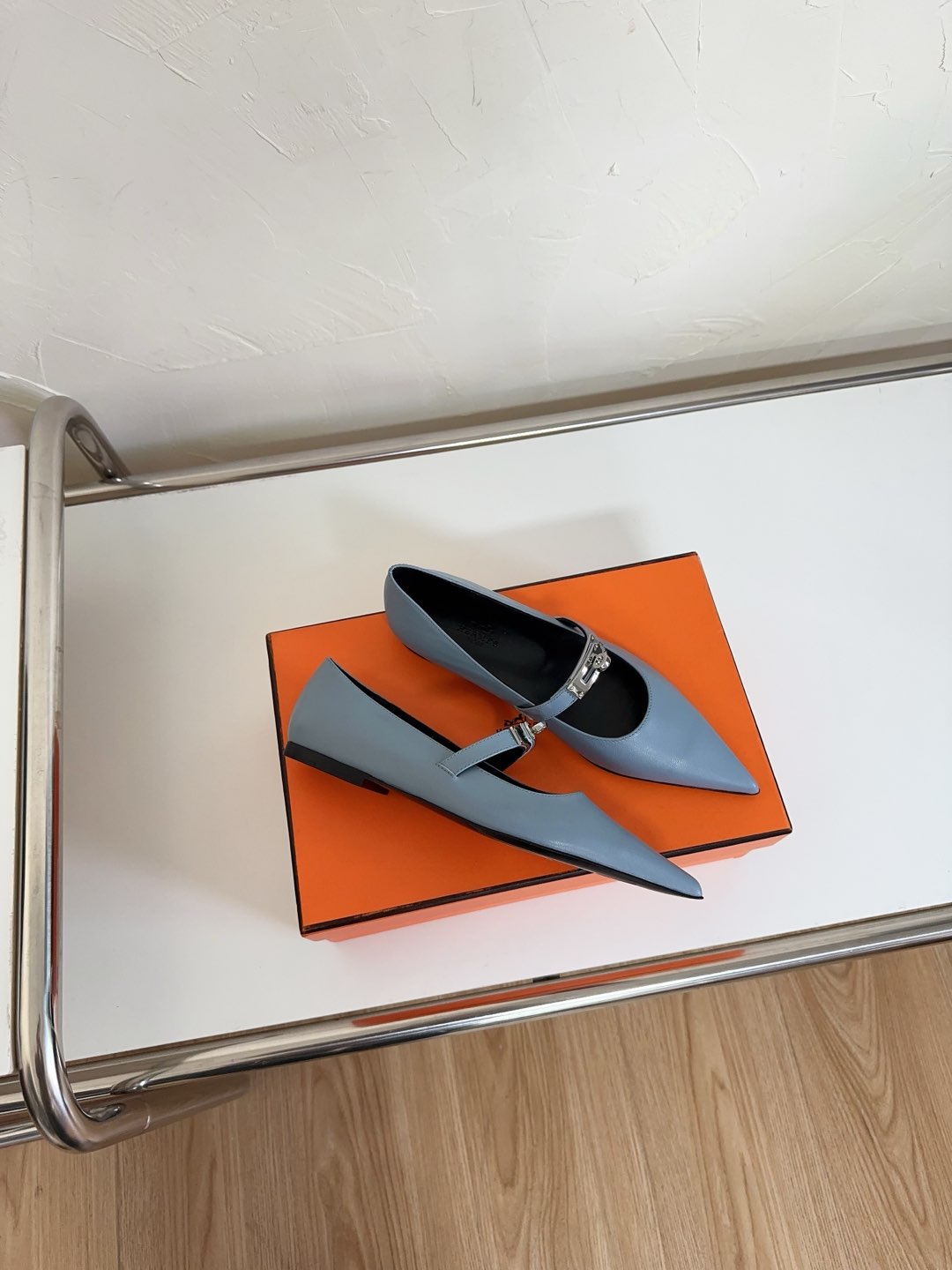 KIARA FLAT PUMP IN CERULEAN BLUE CALFSKIN