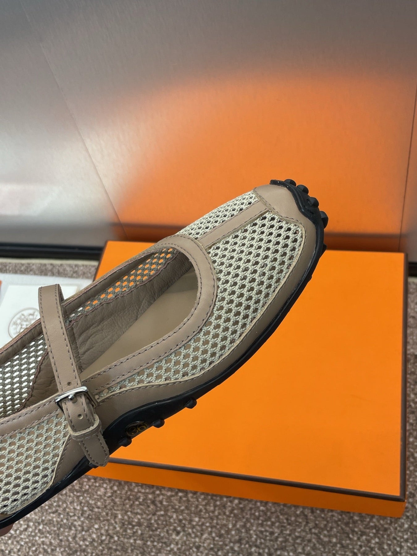 KICHU BALLET FLAT IN MOCHA BROWN CROCHET KNIT AND CALFSKIN