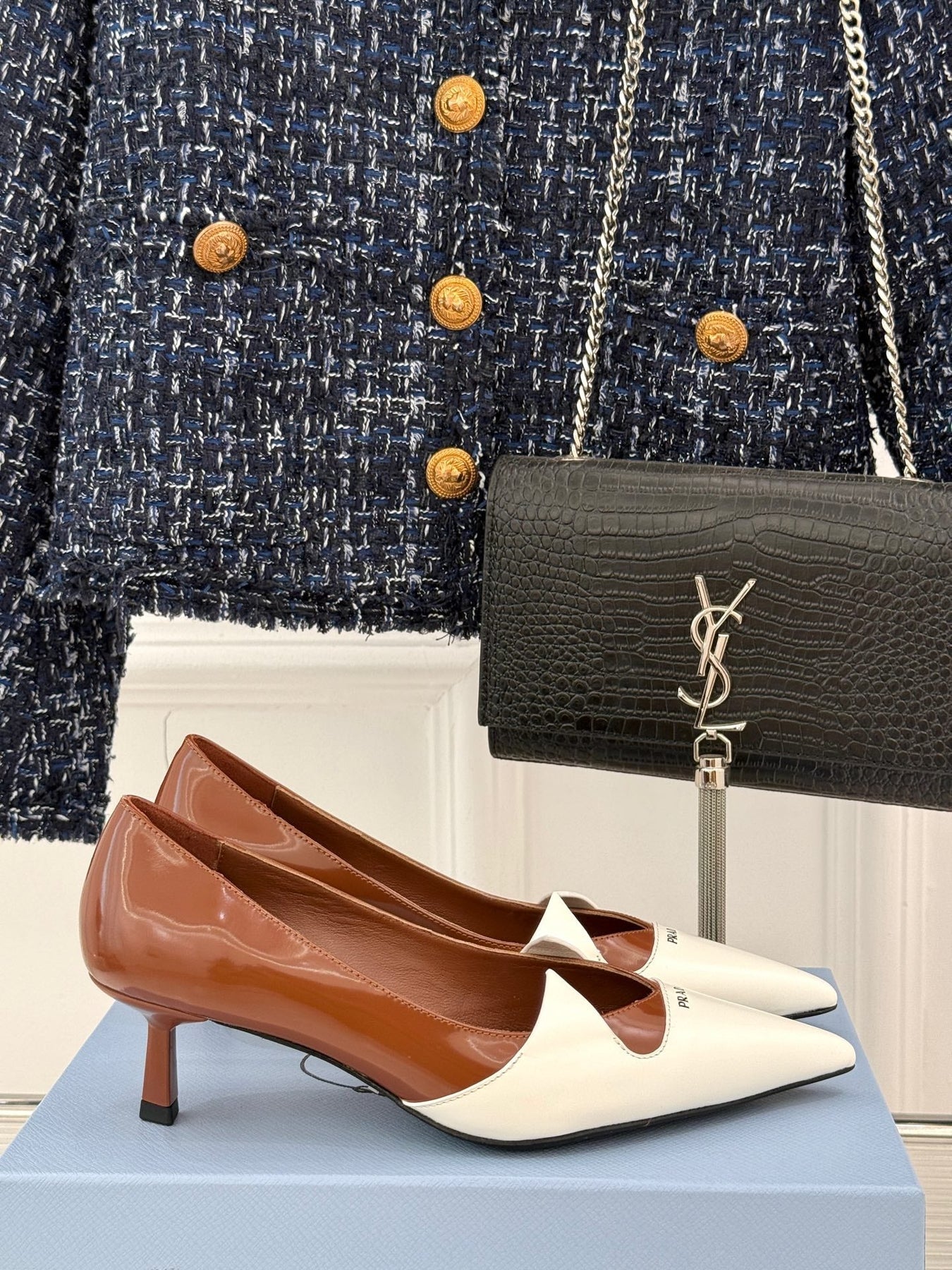 KITTEN HEEL PUMPS IN WHITE MIX BROWN CALFSKIN