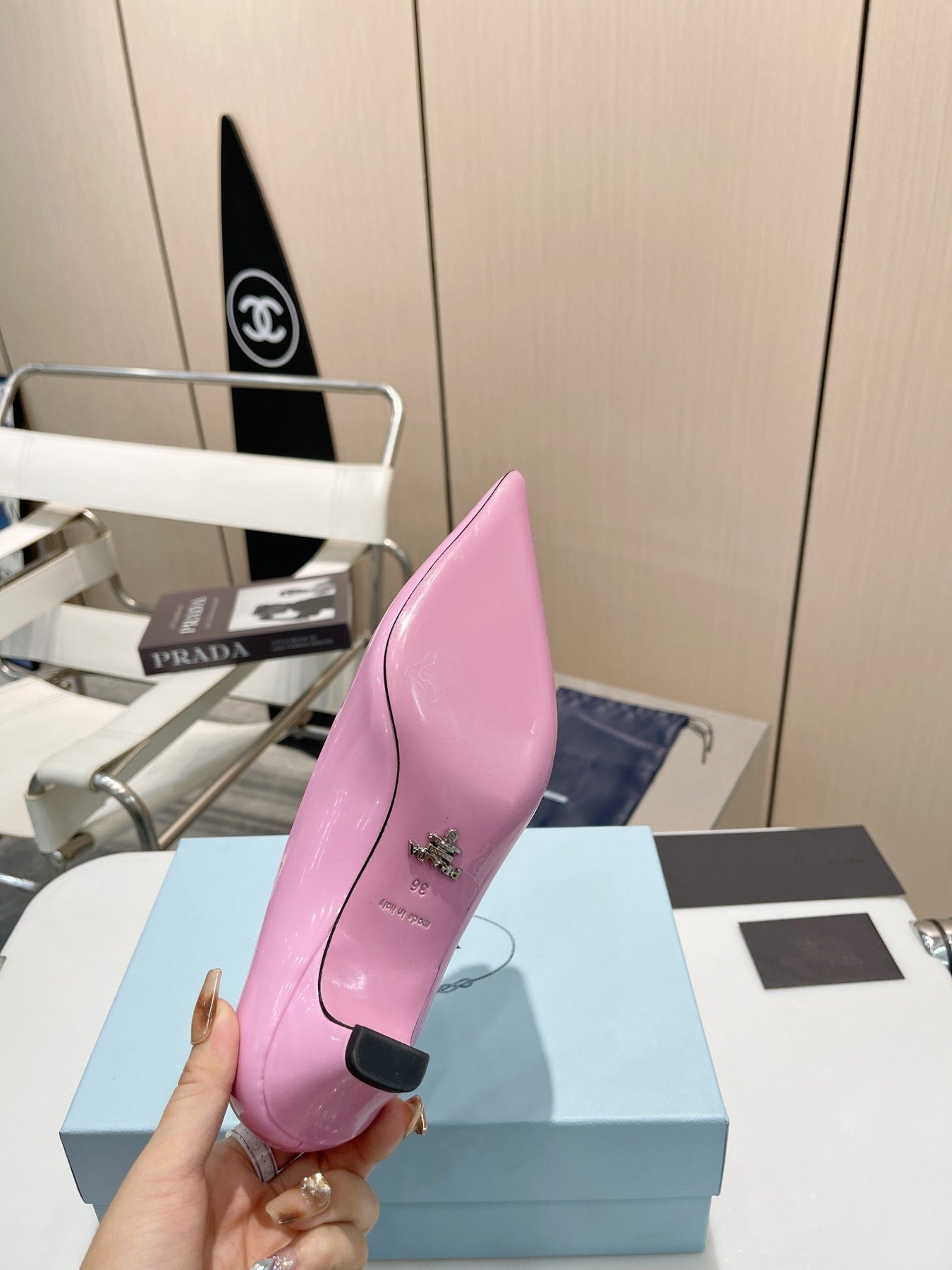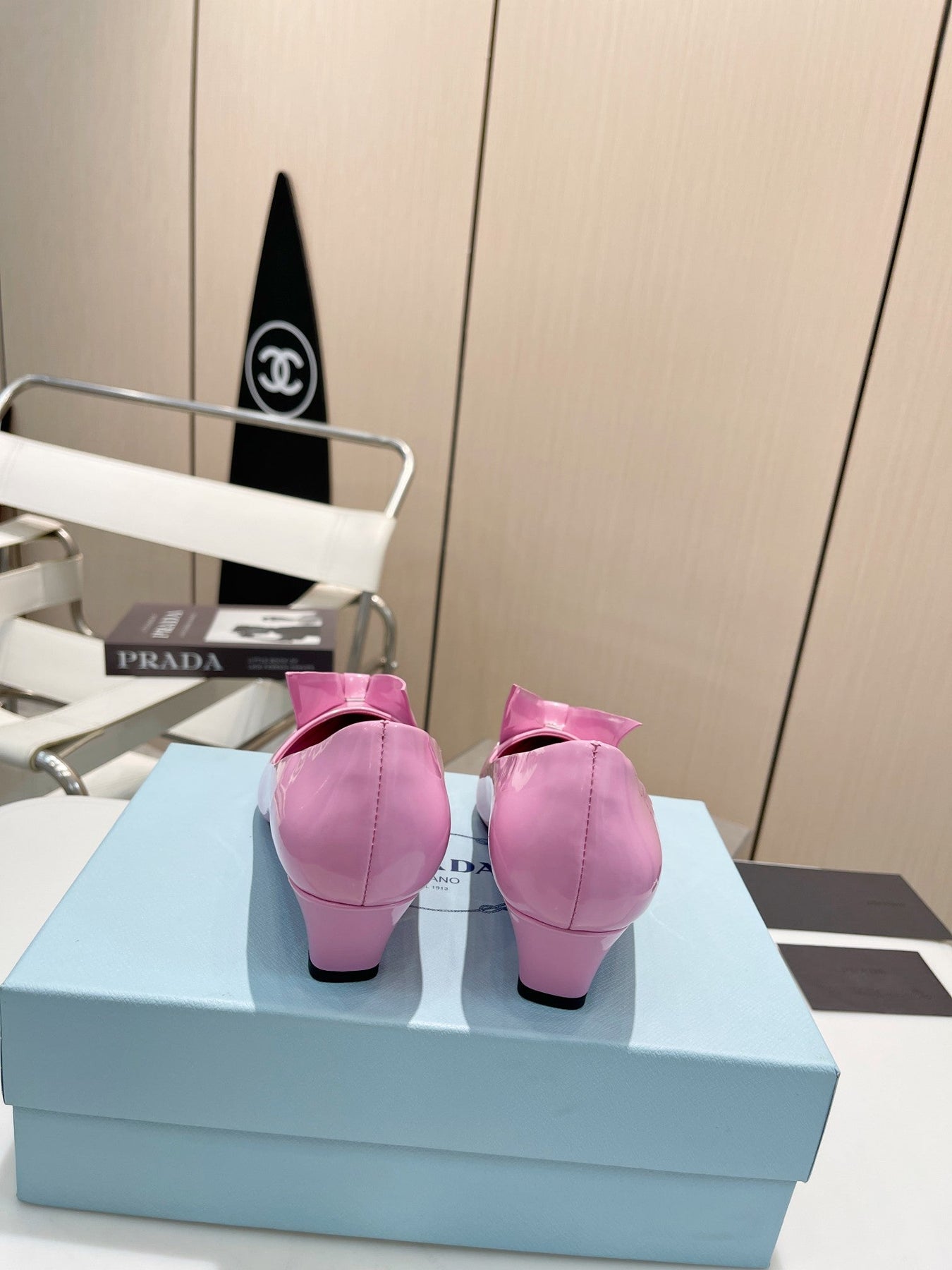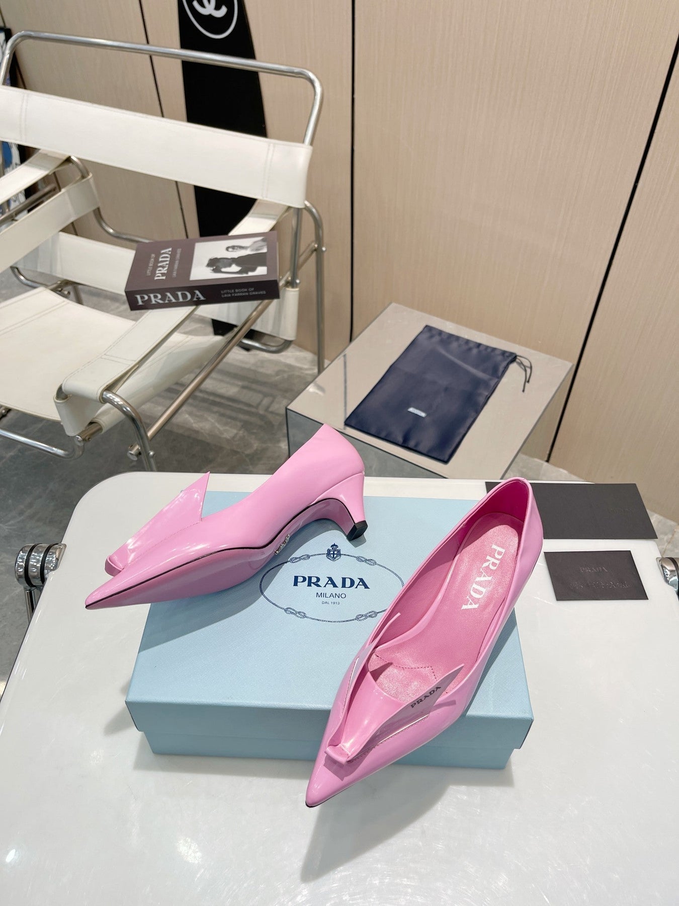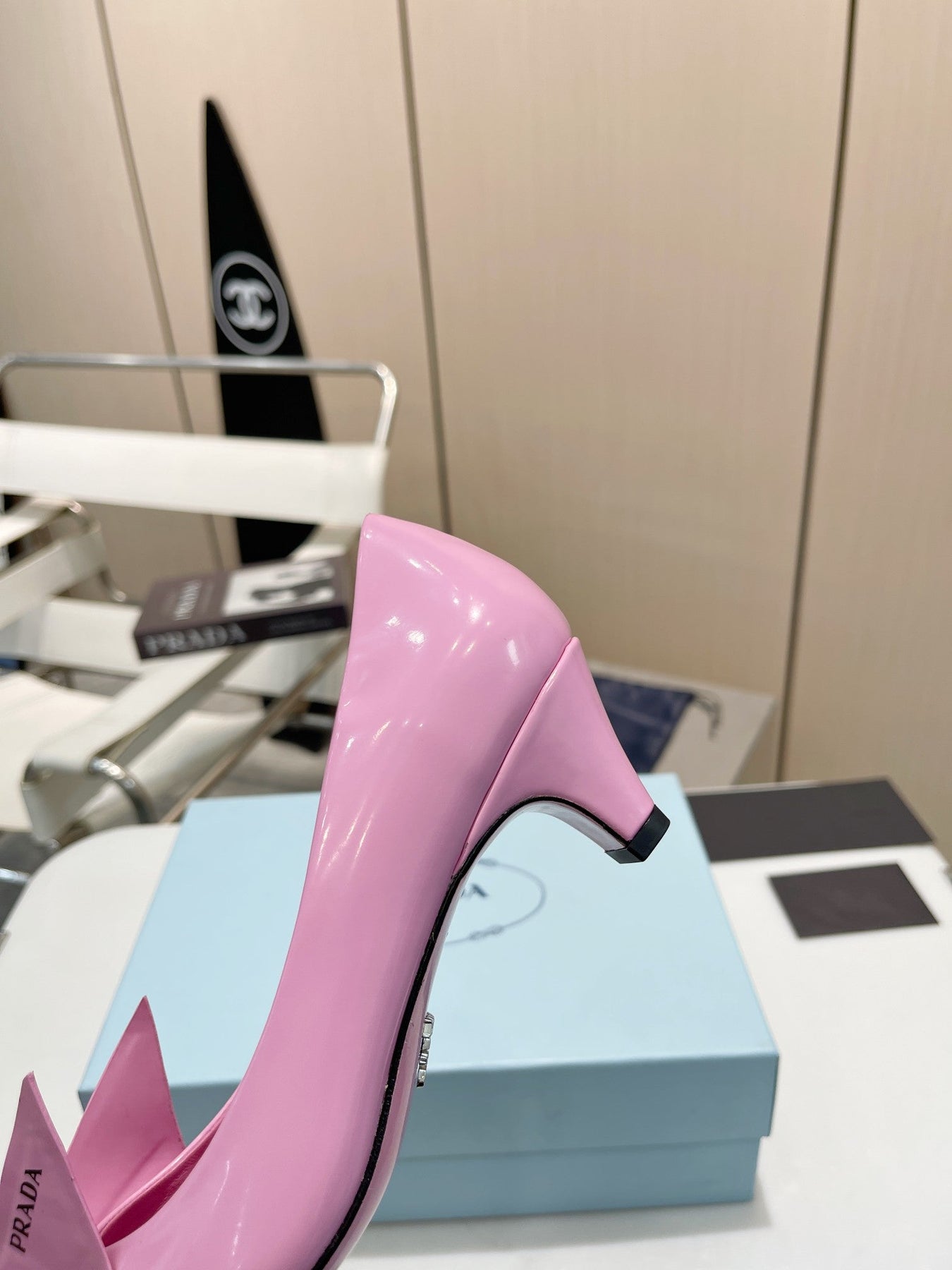 KITTEN HEEL PUMPS WITH CREATIVE SHAPE IN PINK GLOSSY LAMBSKIN