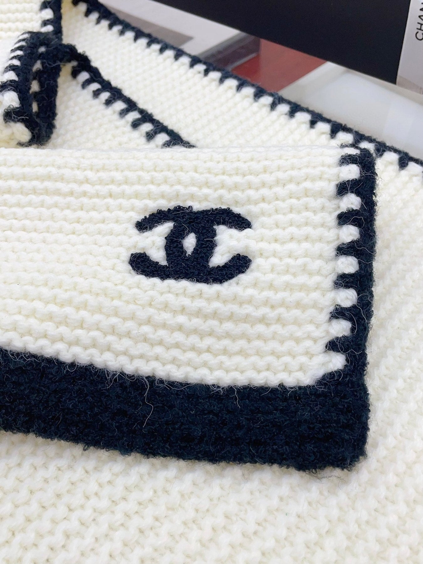 KNIT SCARF 200 CM IN WHITE CASHMERE WITH BLACK LOGO 383911