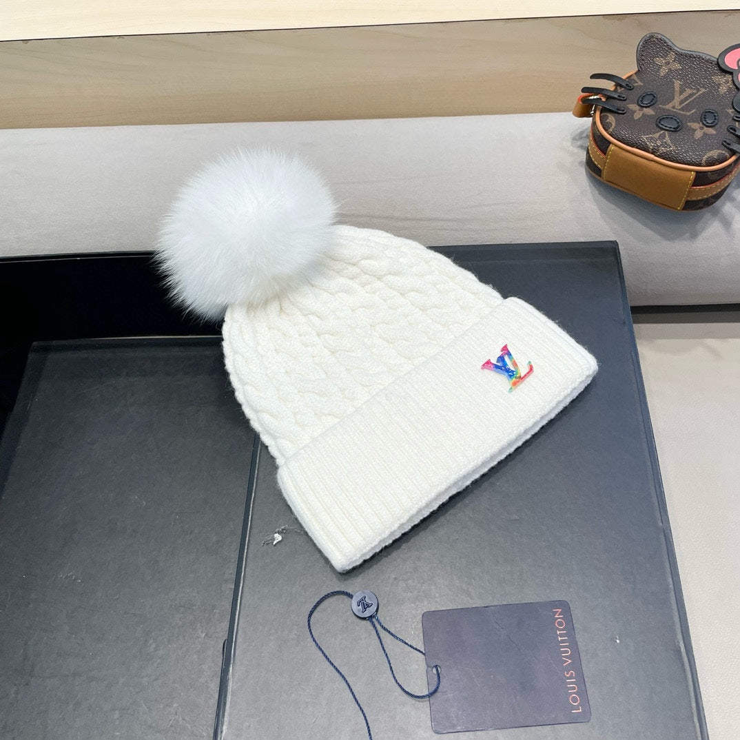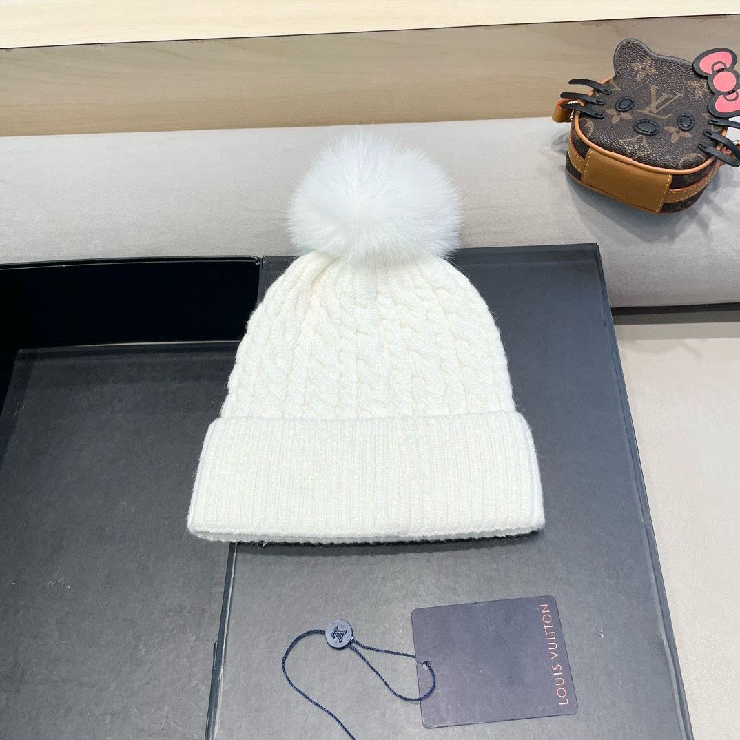 KNITTED BEANIE HAT IN WHITE WOOL 426215