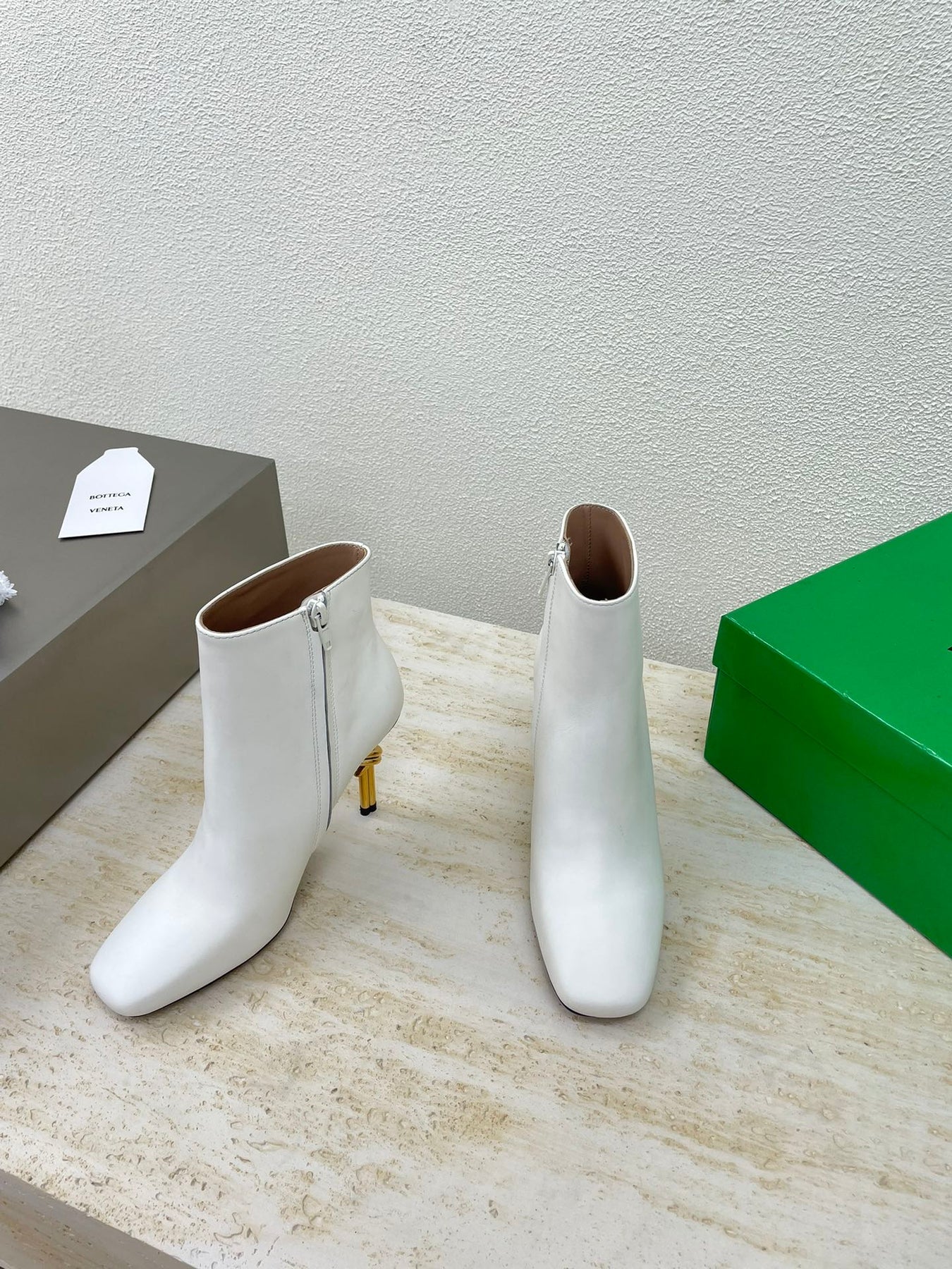 KNOT ANKLE BOOT IN WHITE CALFSKIN WITH GOLD METAL HEEL 9 CM