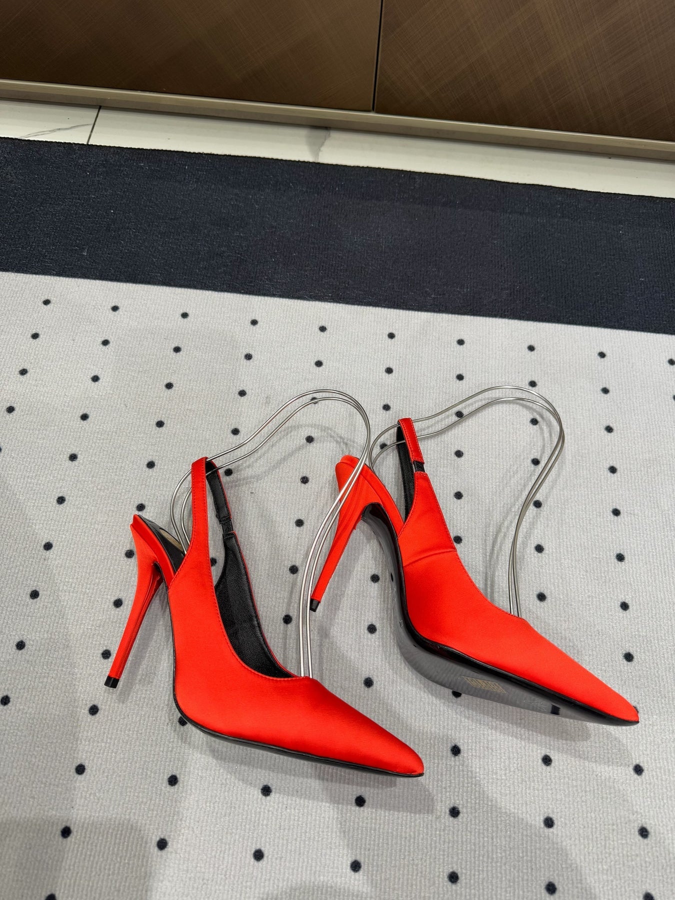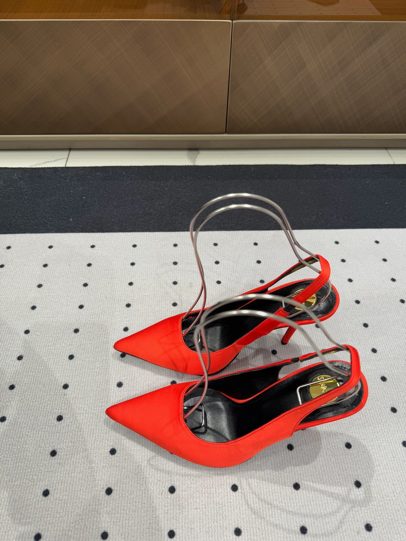 L'ENTRACTE SLINGBACK PUMPS IN RED SATIN