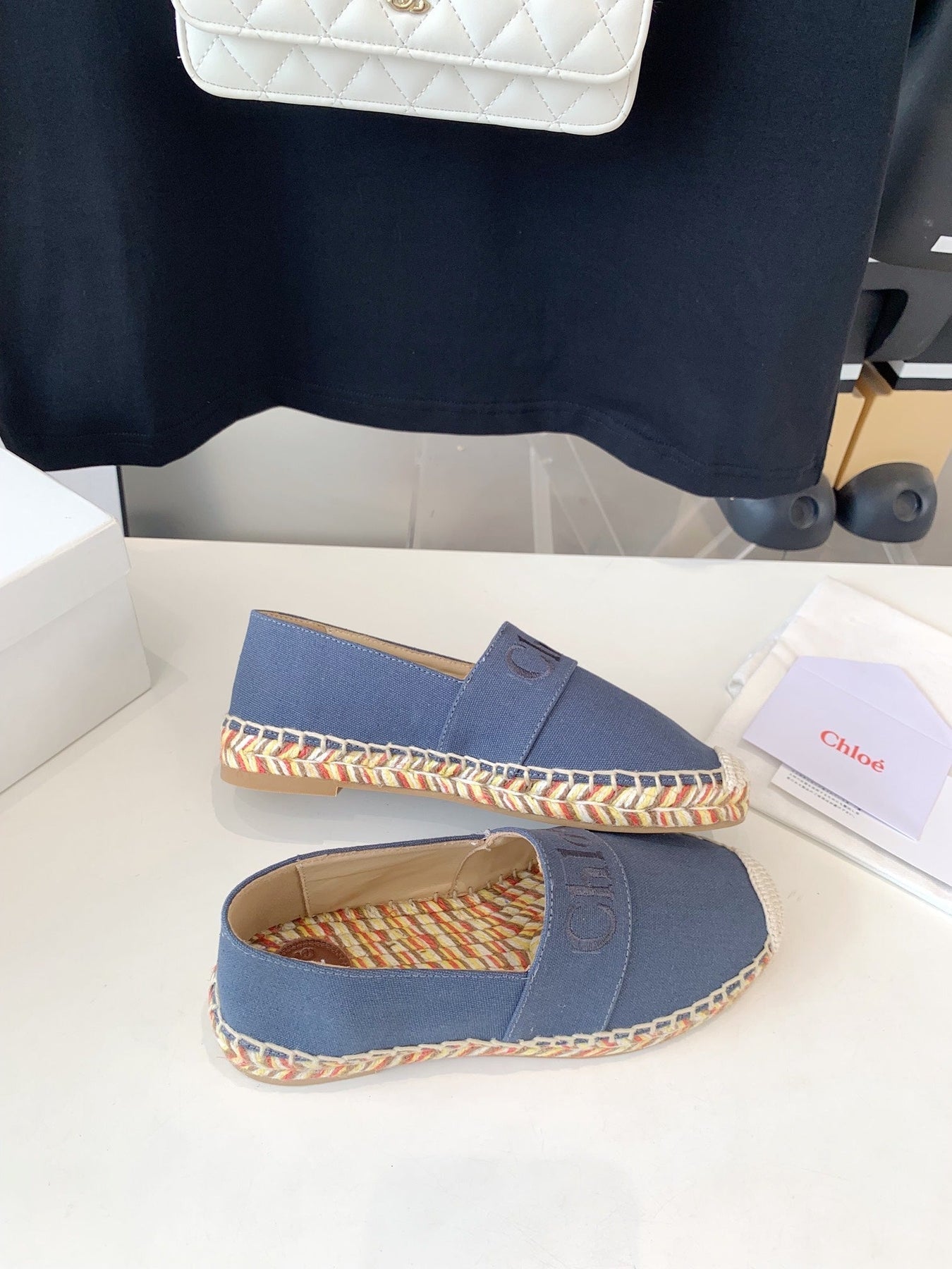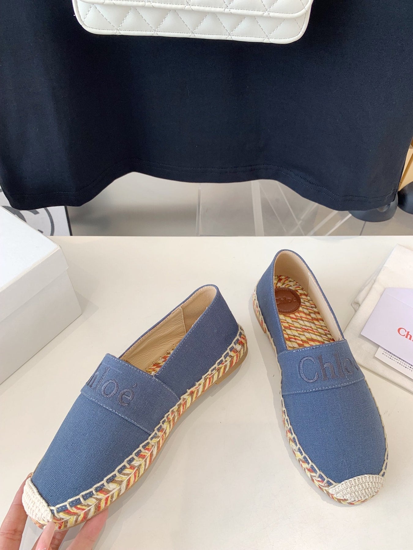 LOAFER SHOES IN PIGEON BLUE DENIM AND WOVEN RAFFIA