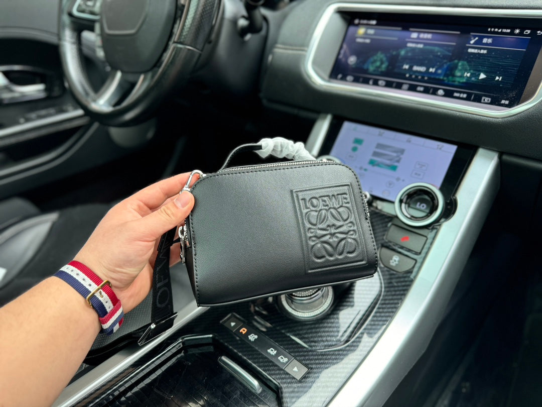 LOE MINI 18 CAMERA CROSS BODY BAG IN BLACK CALFSKIN