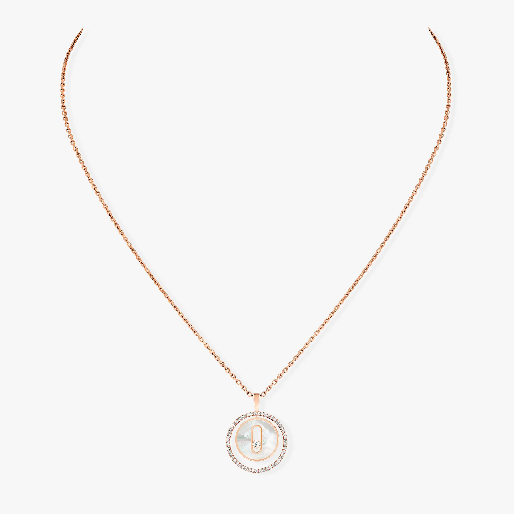 LUCKY MOVE 1 DIAMOND WHITE MOTHER OF PEARL PINK GOLD DIAMOND NECKLACE