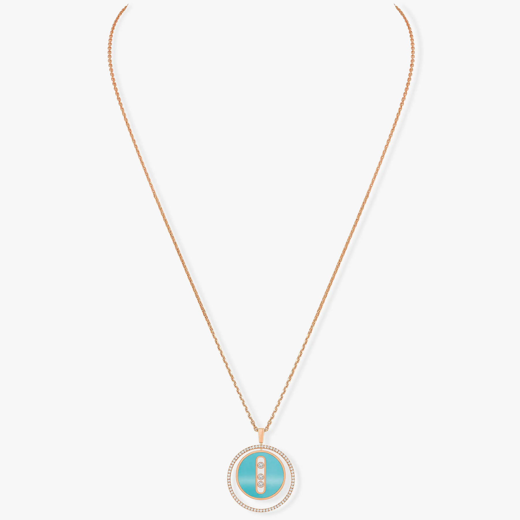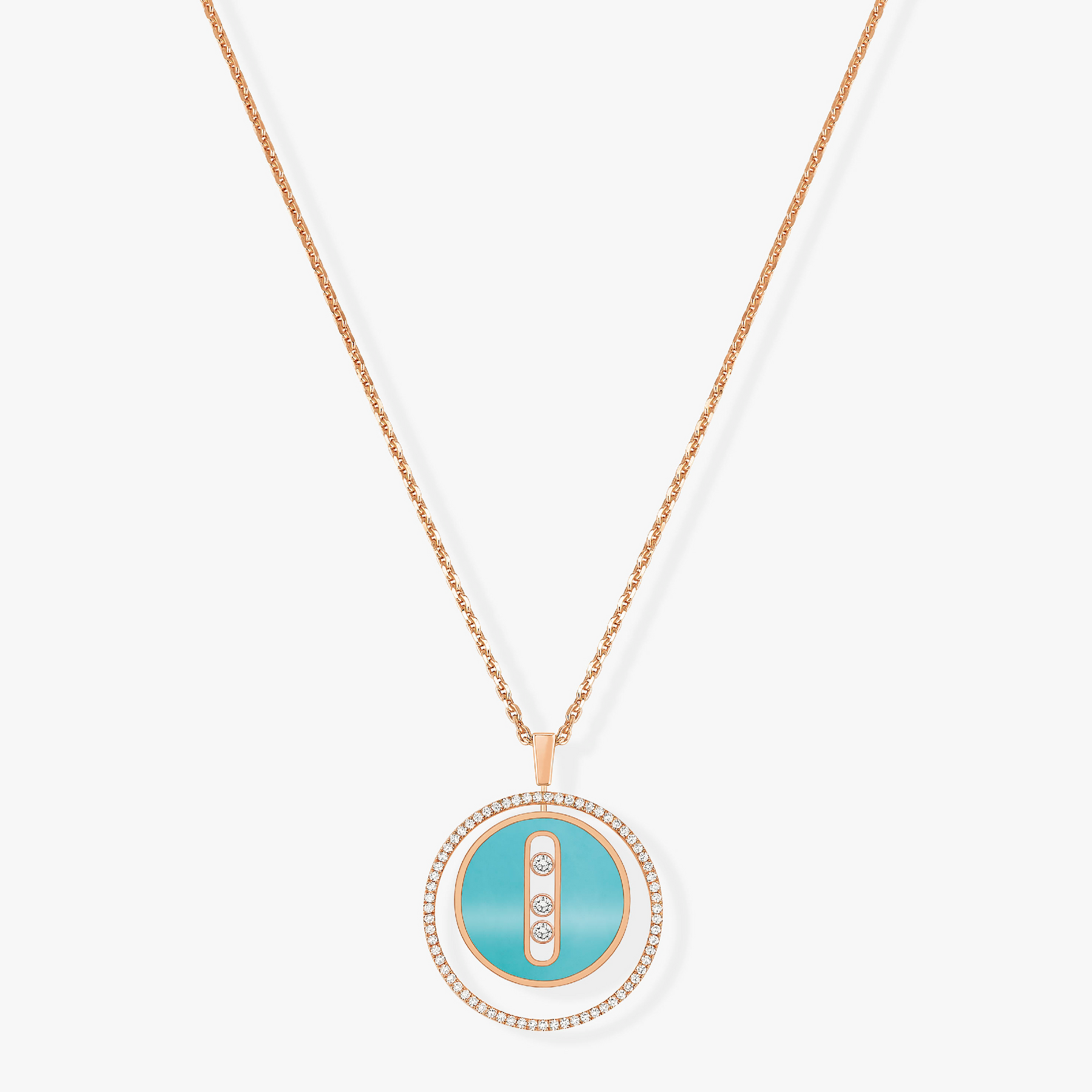 LUCKY MOVE 3 DIAMONDS TURQUOISE PINK GOLD DIAMOND NECKLACE