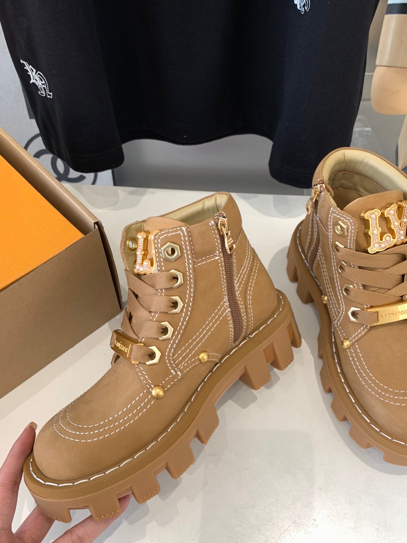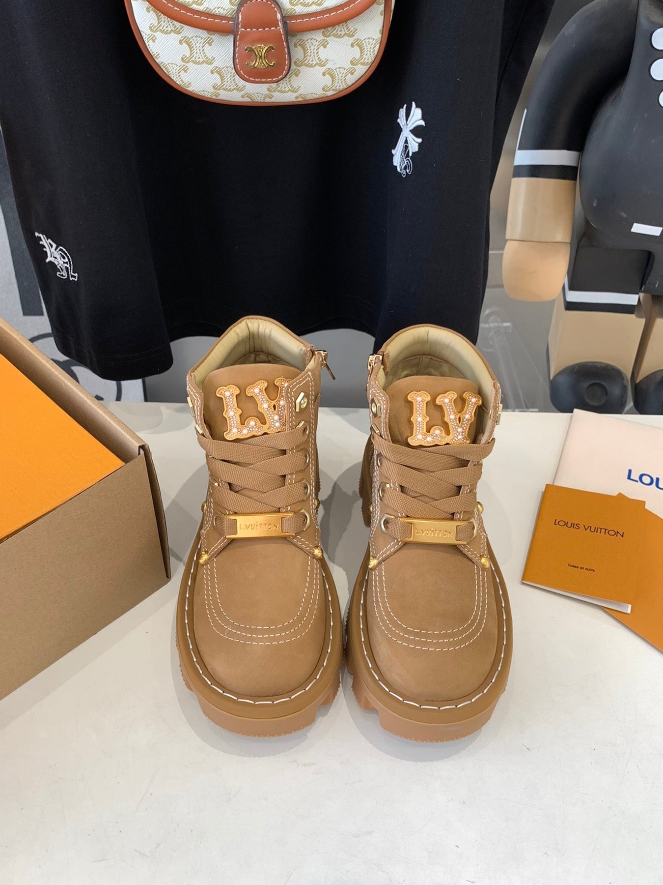 LV CHECKER ANKLE BOOT IN COPPER BROWN SUEDE