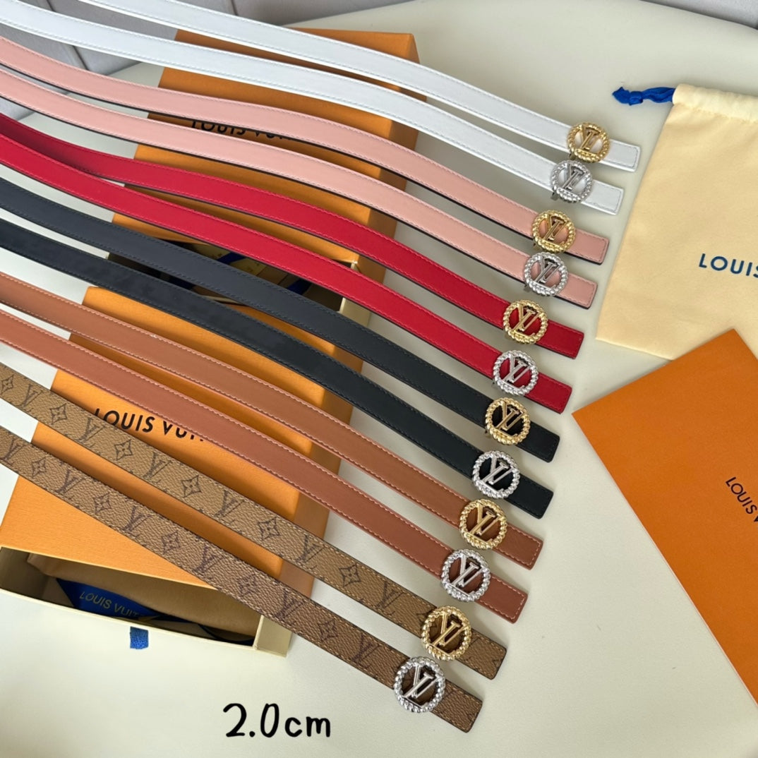 LV Circle Nautical 20mm Reversible Belt Gold Buckle White Brown Lambskin