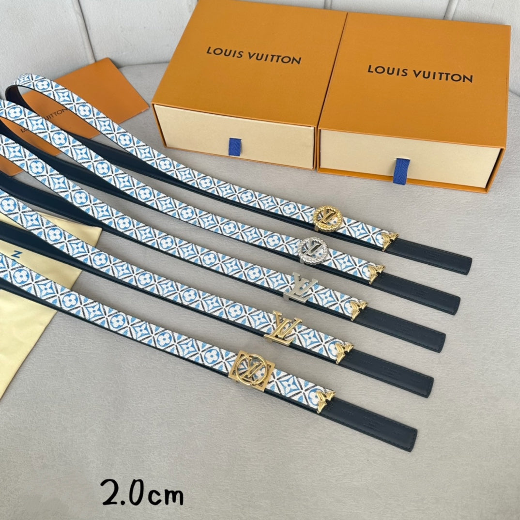 LV Circle Nautical 20mm Reversible Belt Silver Buckle Black White Blue Lambskin