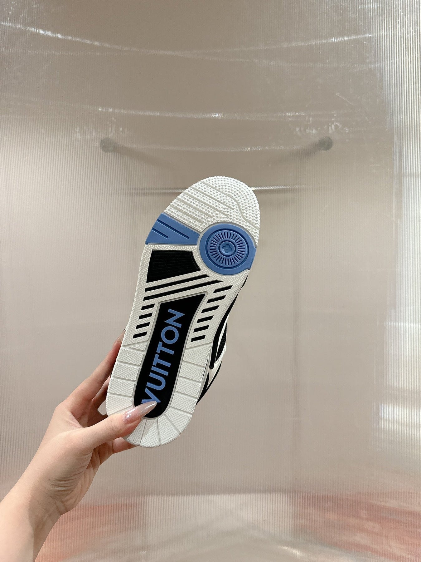 LV SKATE SNEAKER IN WHITE MIX BLACK AND SKY BLUE CALFSKIN