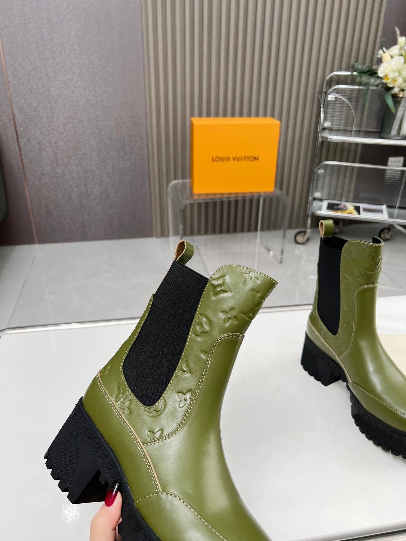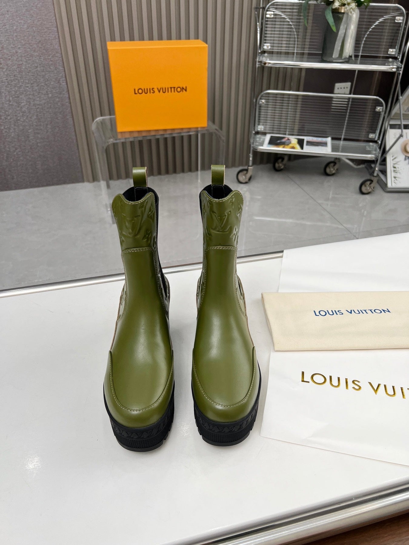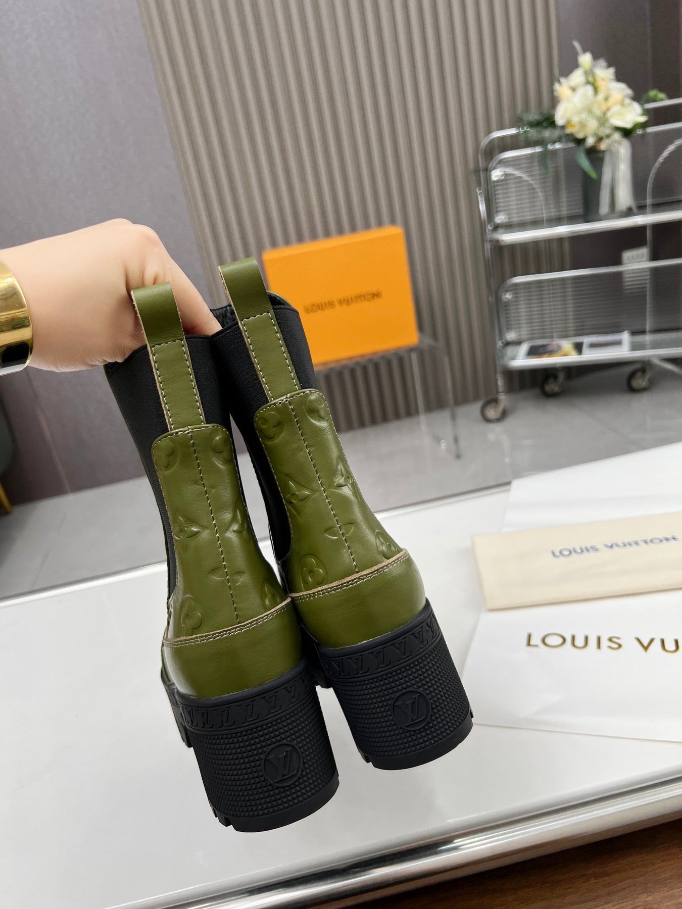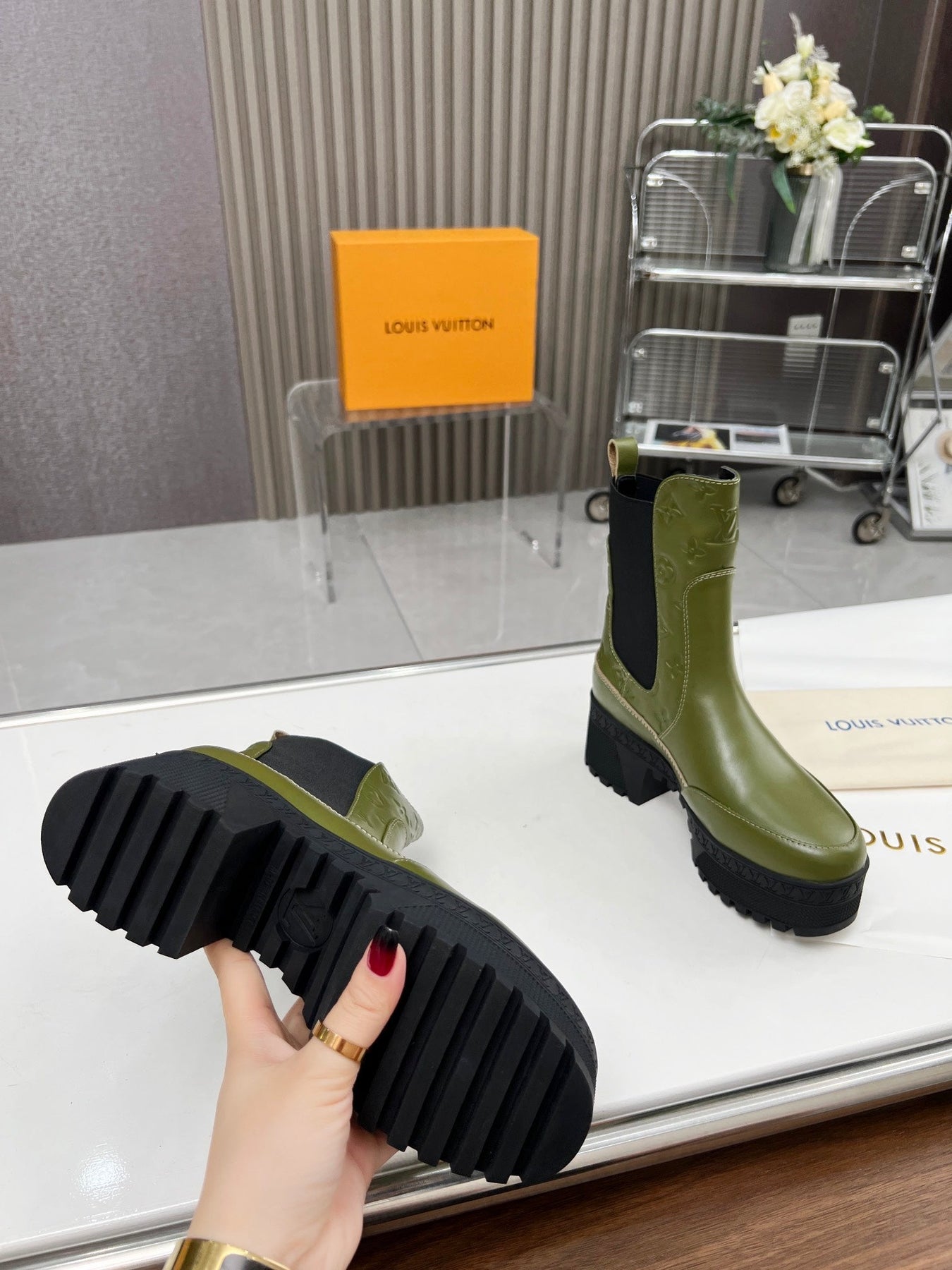 LV WOMEN SHORT BOOT IN DARK OLIVE GREEN CALFSKIN