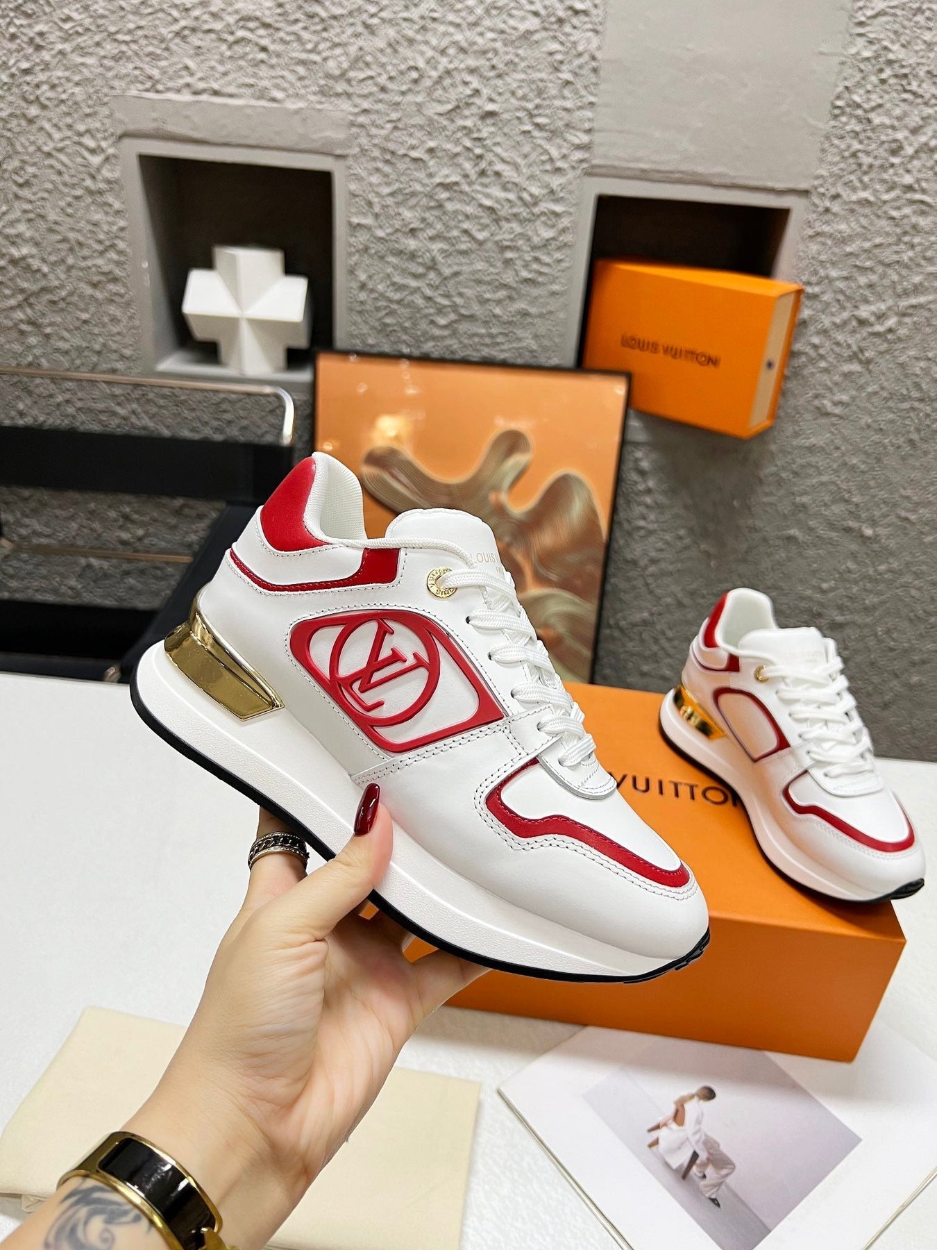 LV WOMEN SNEAKER IN WHITE MIX CHERRY RED CALFSKIN