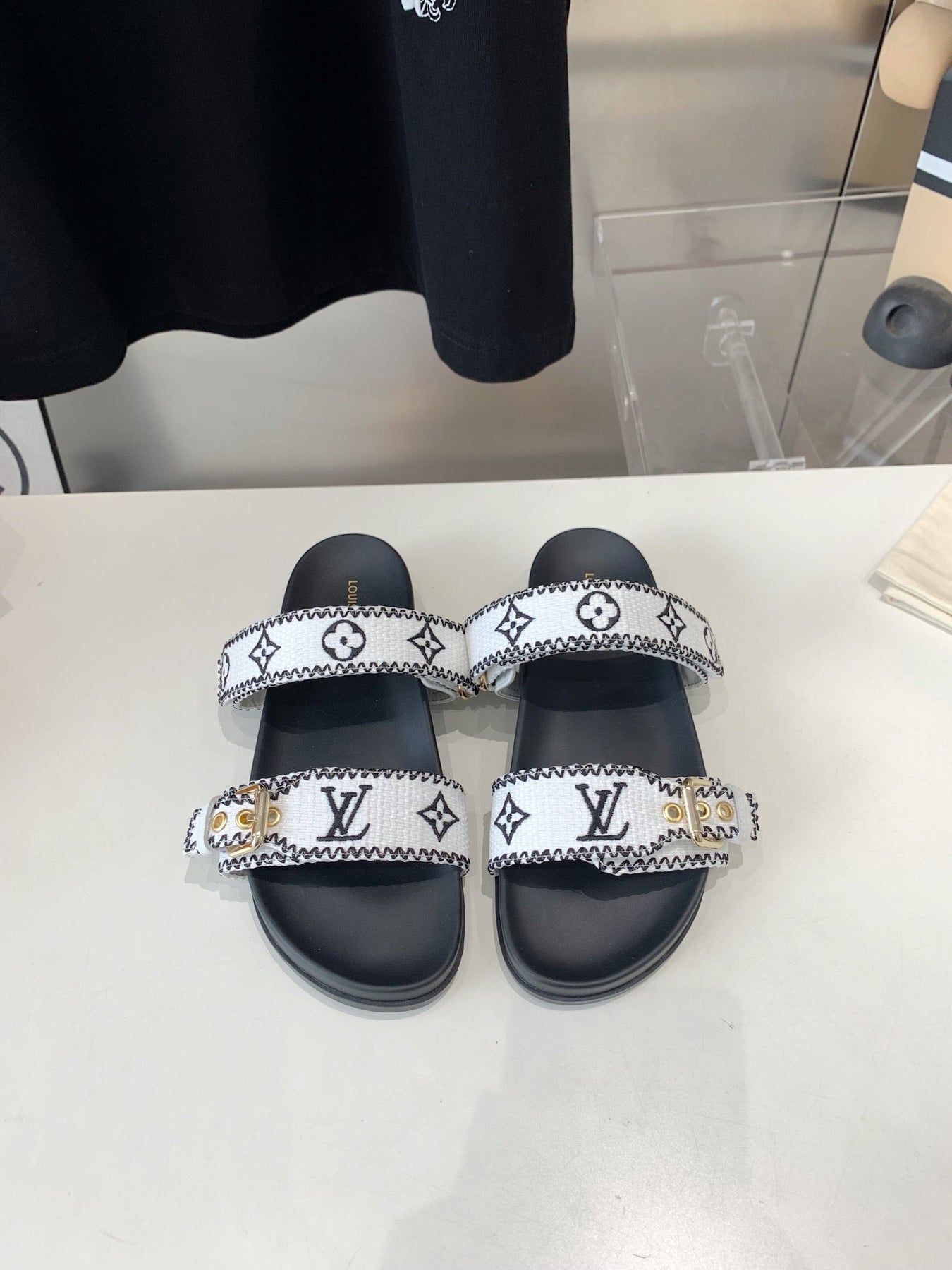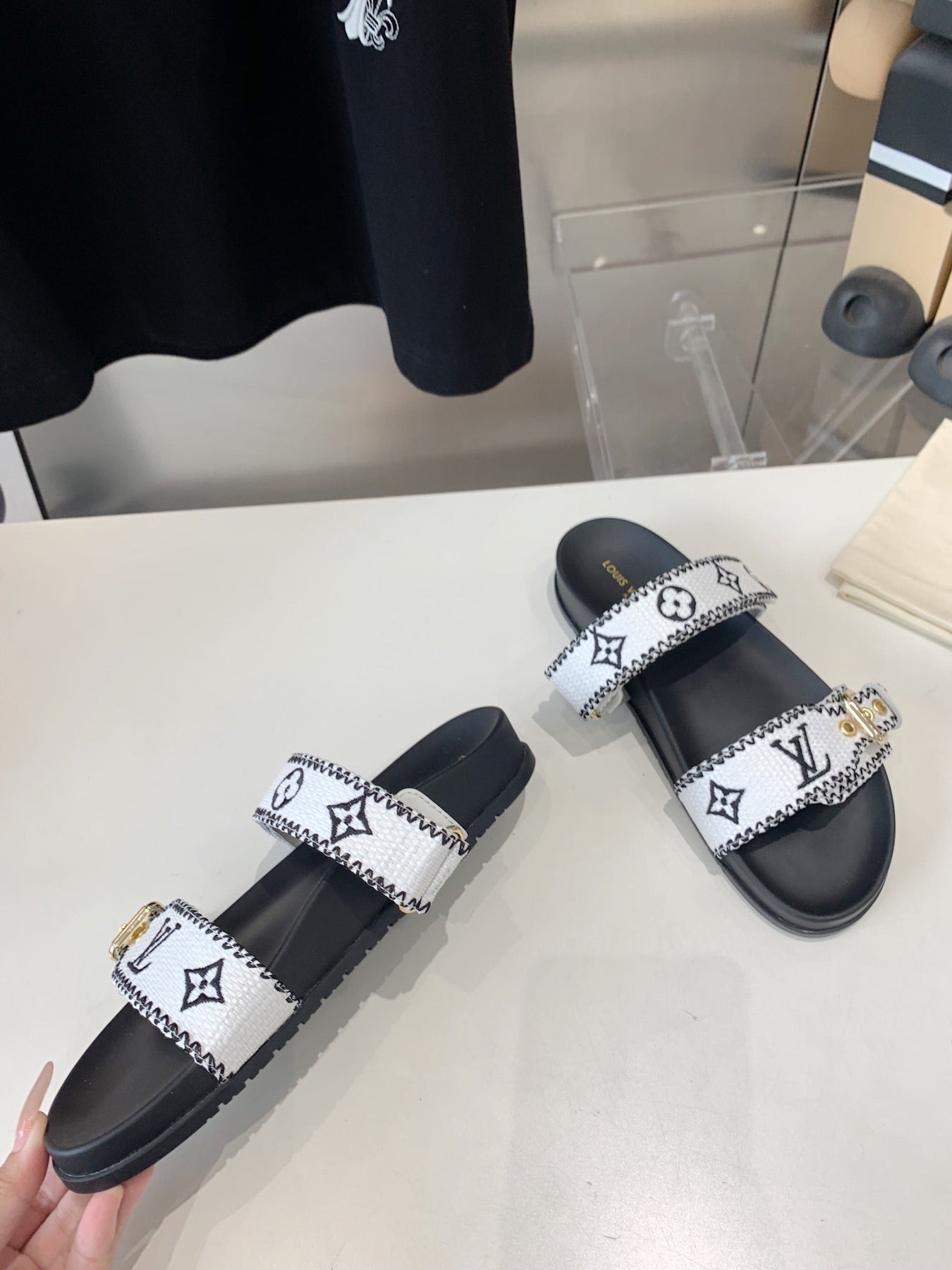 LV WOMEN SUNSET DAD SANDAL IN WHITE MIX BLACK MONOGRAM FABRIC MULE