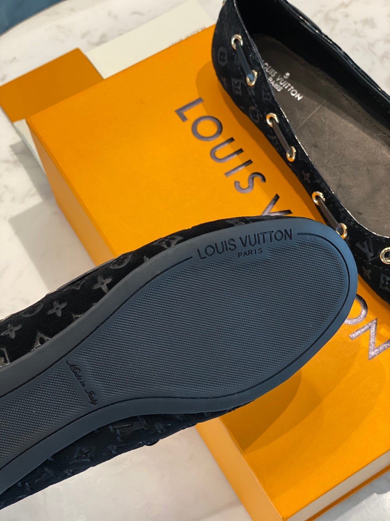 LV WOMEN'S BALLET FLAT IN BLACK MONOGRAM SUEDE WITH BOW
