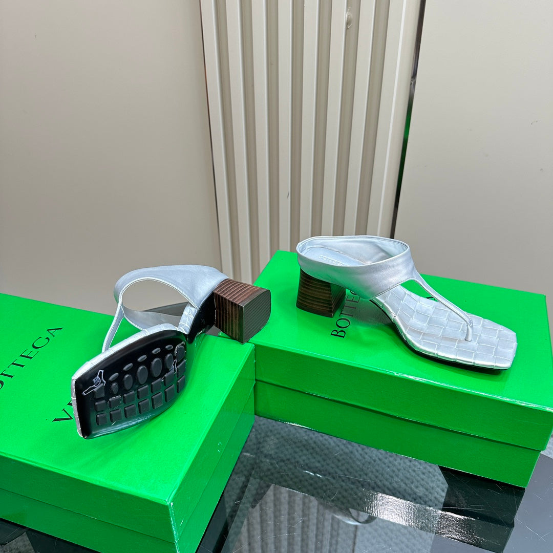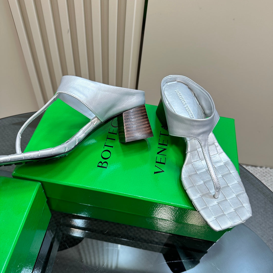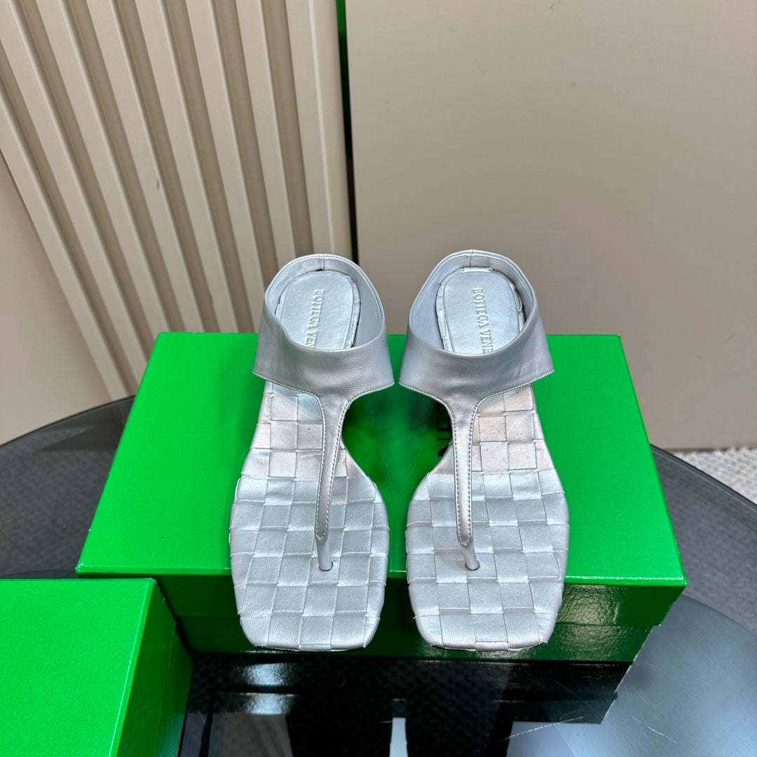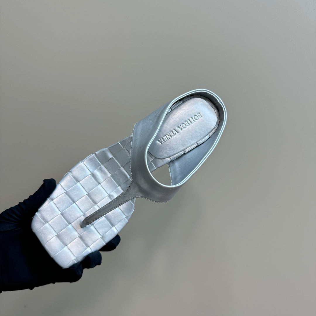 MARELLA THONG IN SILVER LEATHER WITH SIGNATURE INTRECCIATO INSOLE 55 MM