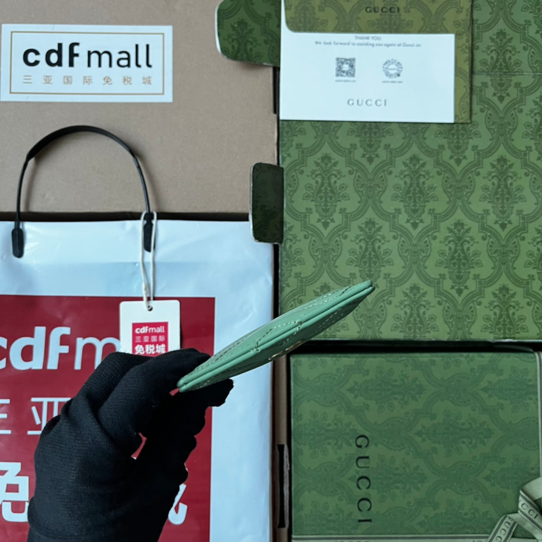 MARMONT QUILTED CARD CASE 10 IN LIGHT GREEN LAMBSKIN