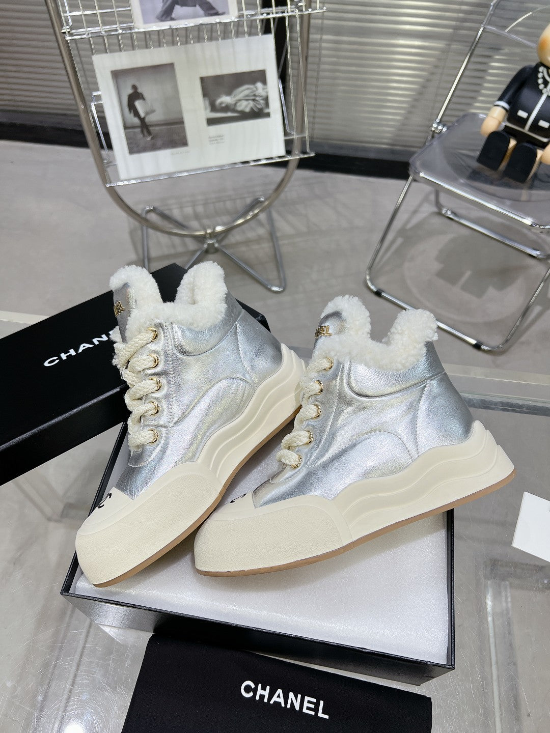 MARTIN BOOTS IN SILVER CALFSKIN AND LAMB FUR LINING