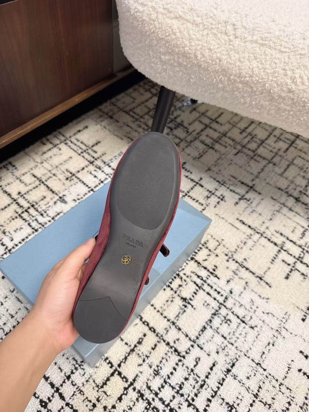 MARY JANE FLAT WITH TRIANGLE LOGO IN SANGRIA RED VELVET