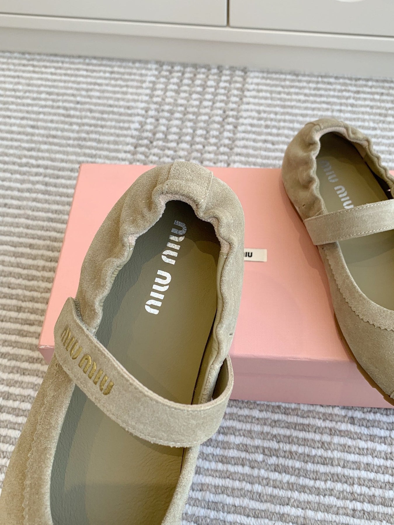 MARY JANE FLATS IN TROUT SUEDE