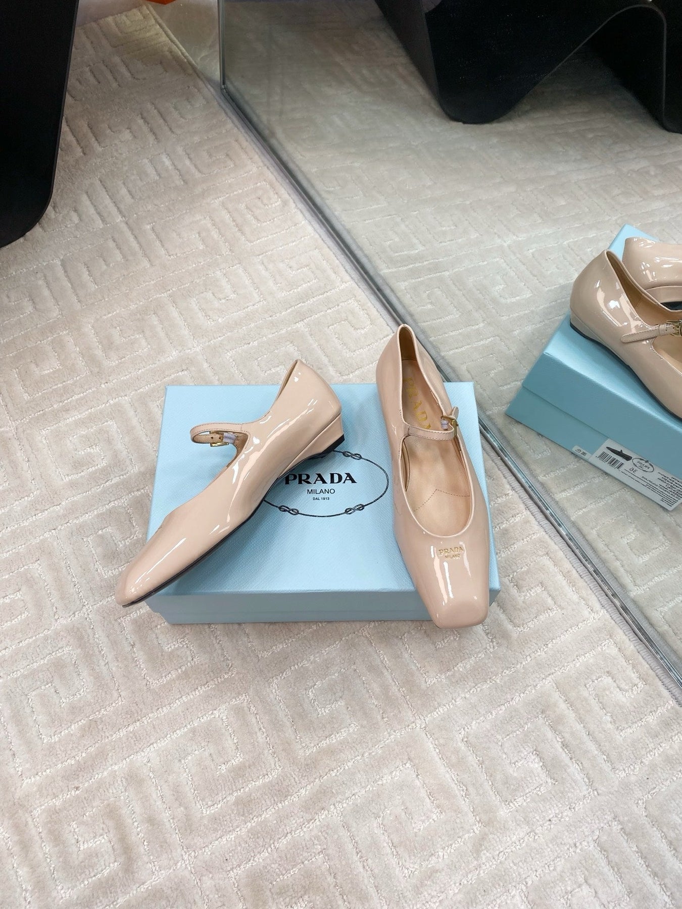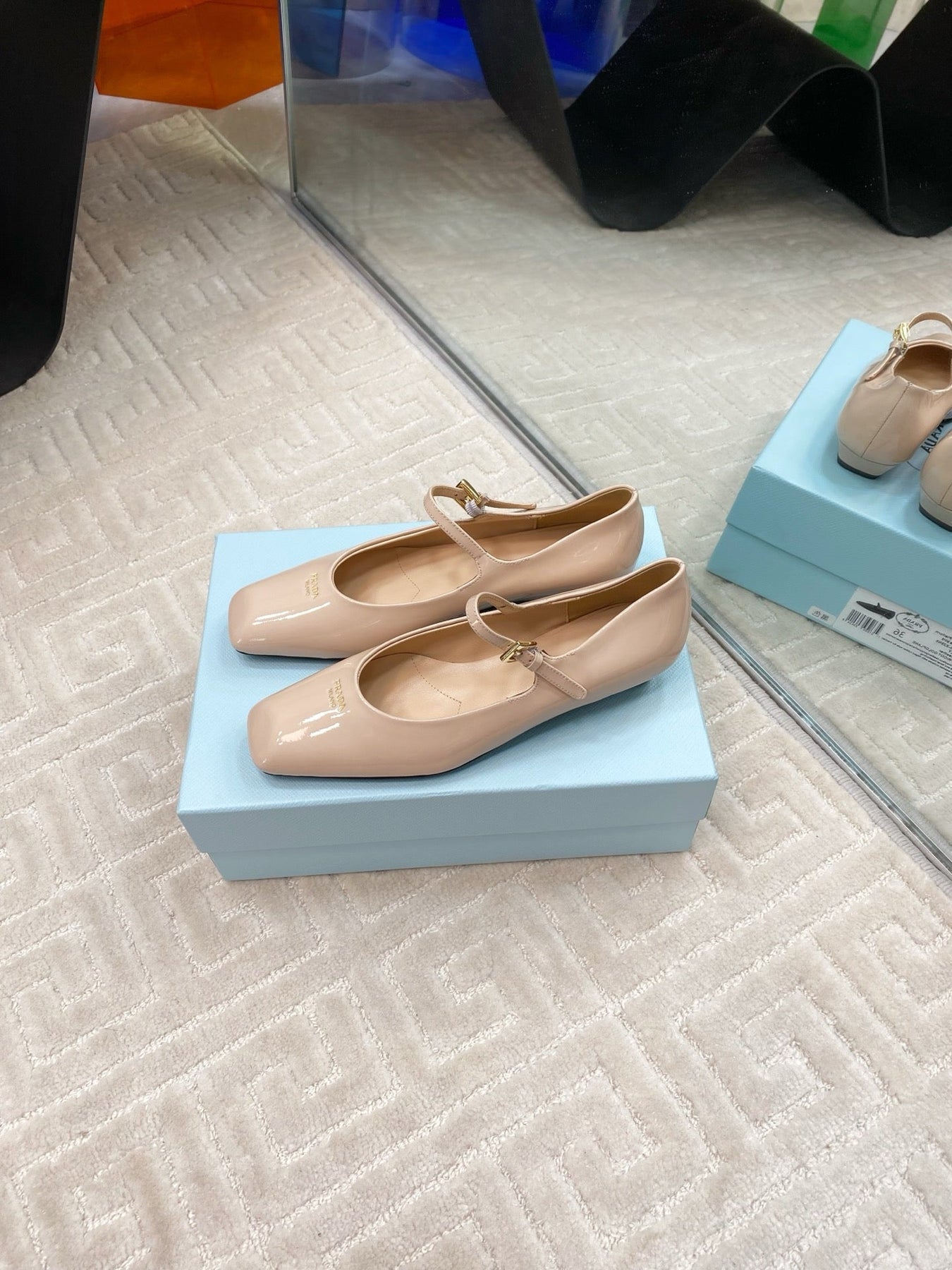 MARY JANE FLATS SQUARE TOE IN BEIGE PATENT SHEEPSKIN