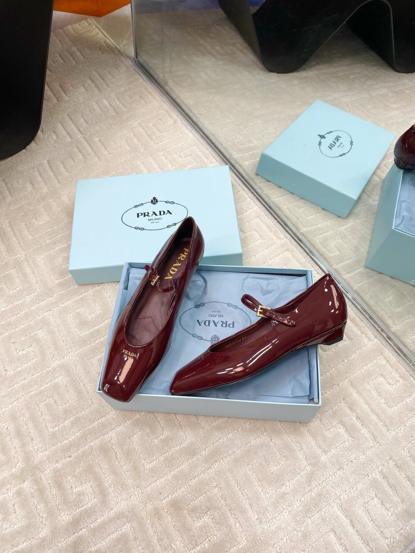 MARY JANE FLATS SQUARE TOE IN BURGUNDY RED PATENT SHEEPSKIN