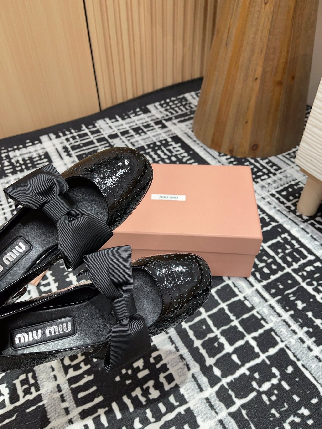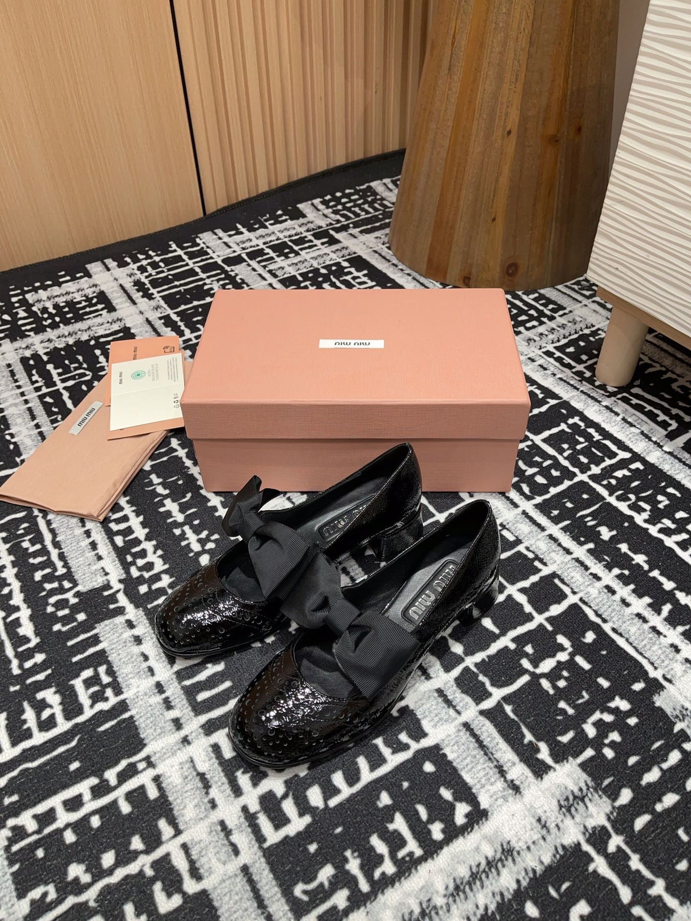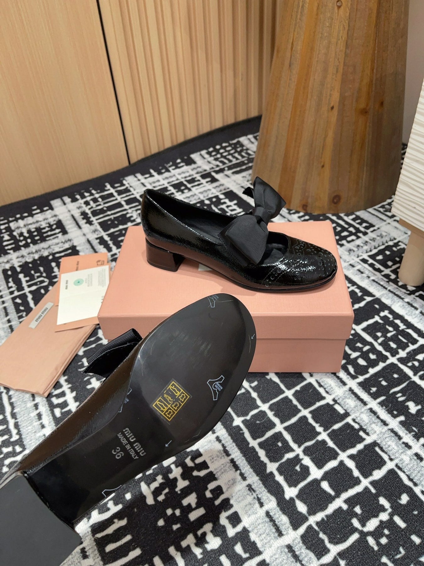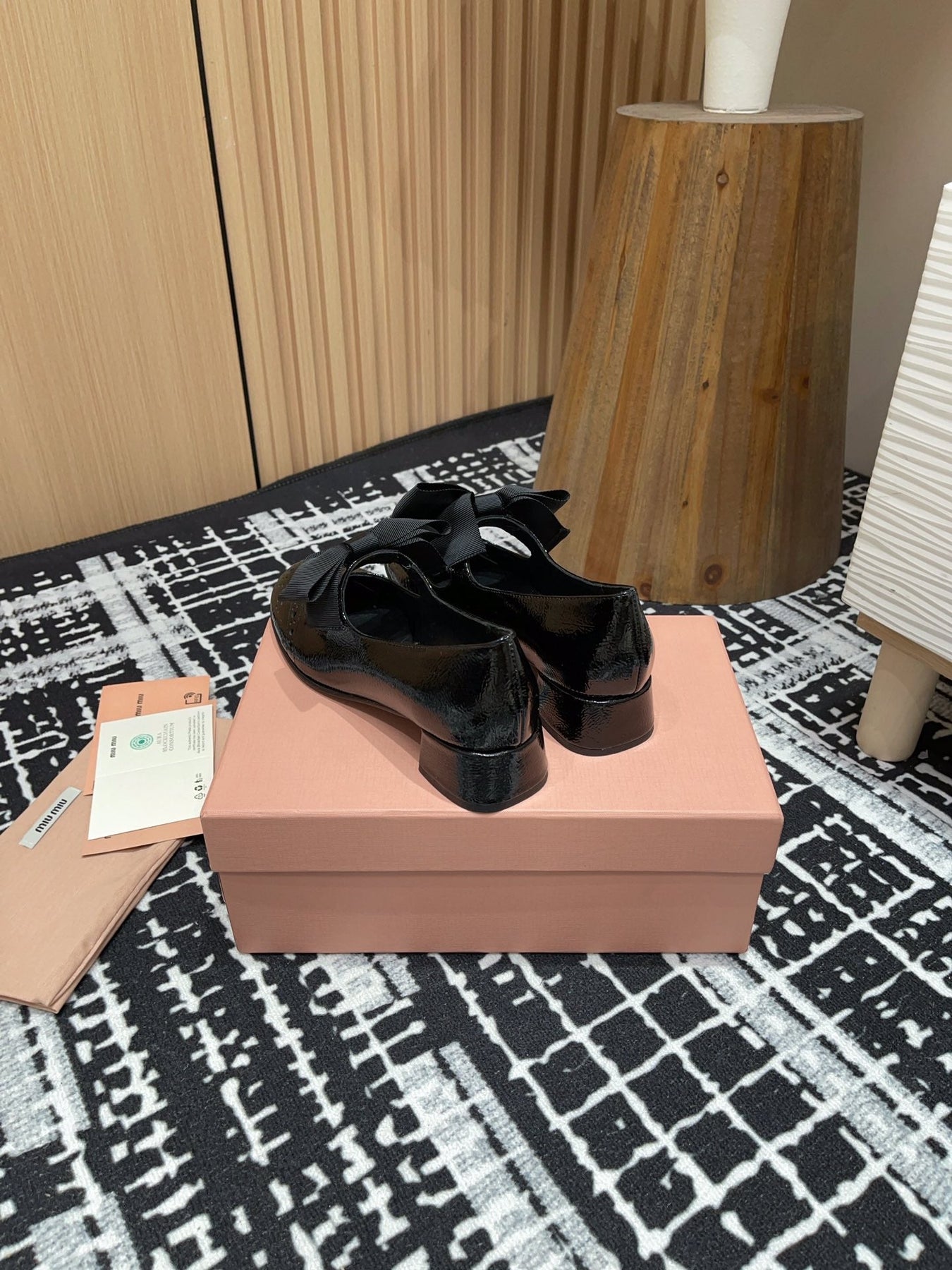 MARY JANE MID HEEL PUMPS IN BLACK PATENT LAMBSKIN WITH BOW