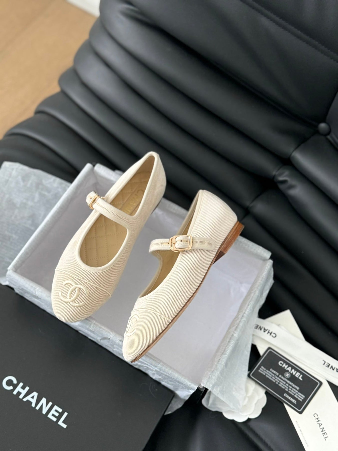 MARY JANE SHOES BEIGE CREAM CORDUROY TWILL FABRIC