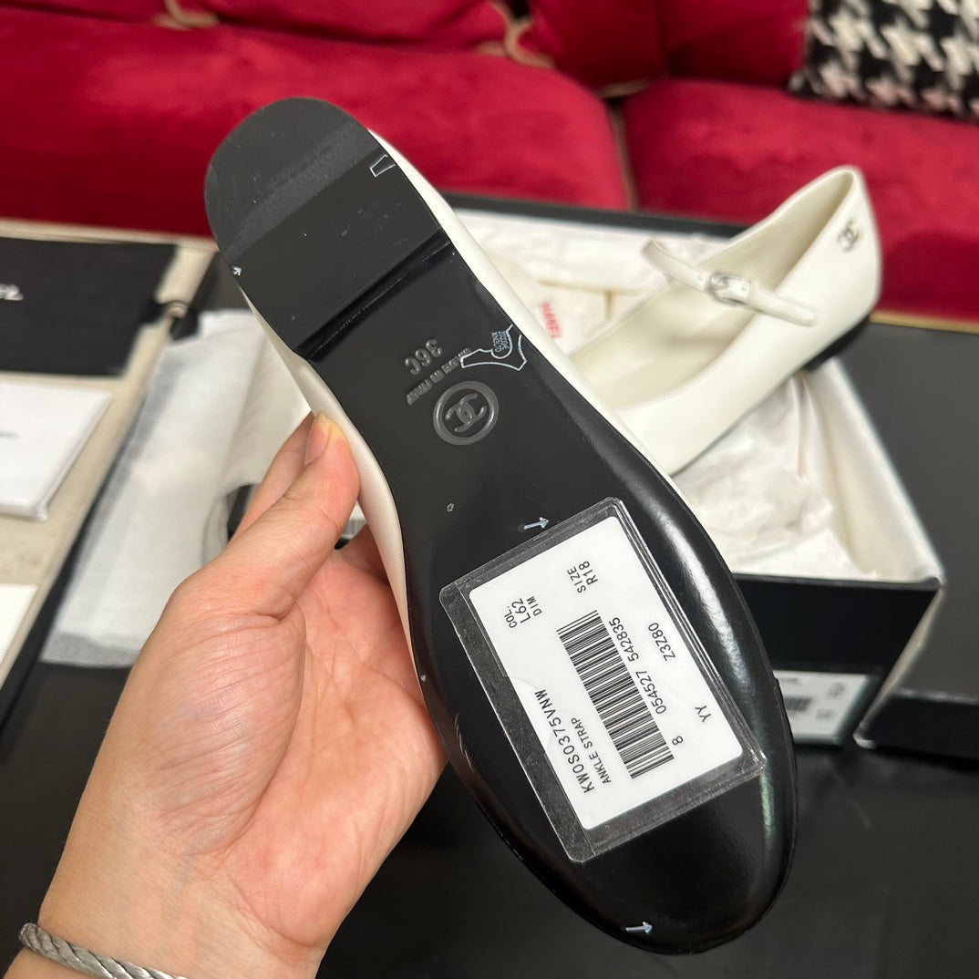 MARY JANE SHOES IN WHITE CALFSKIN AND BLACK SATIN