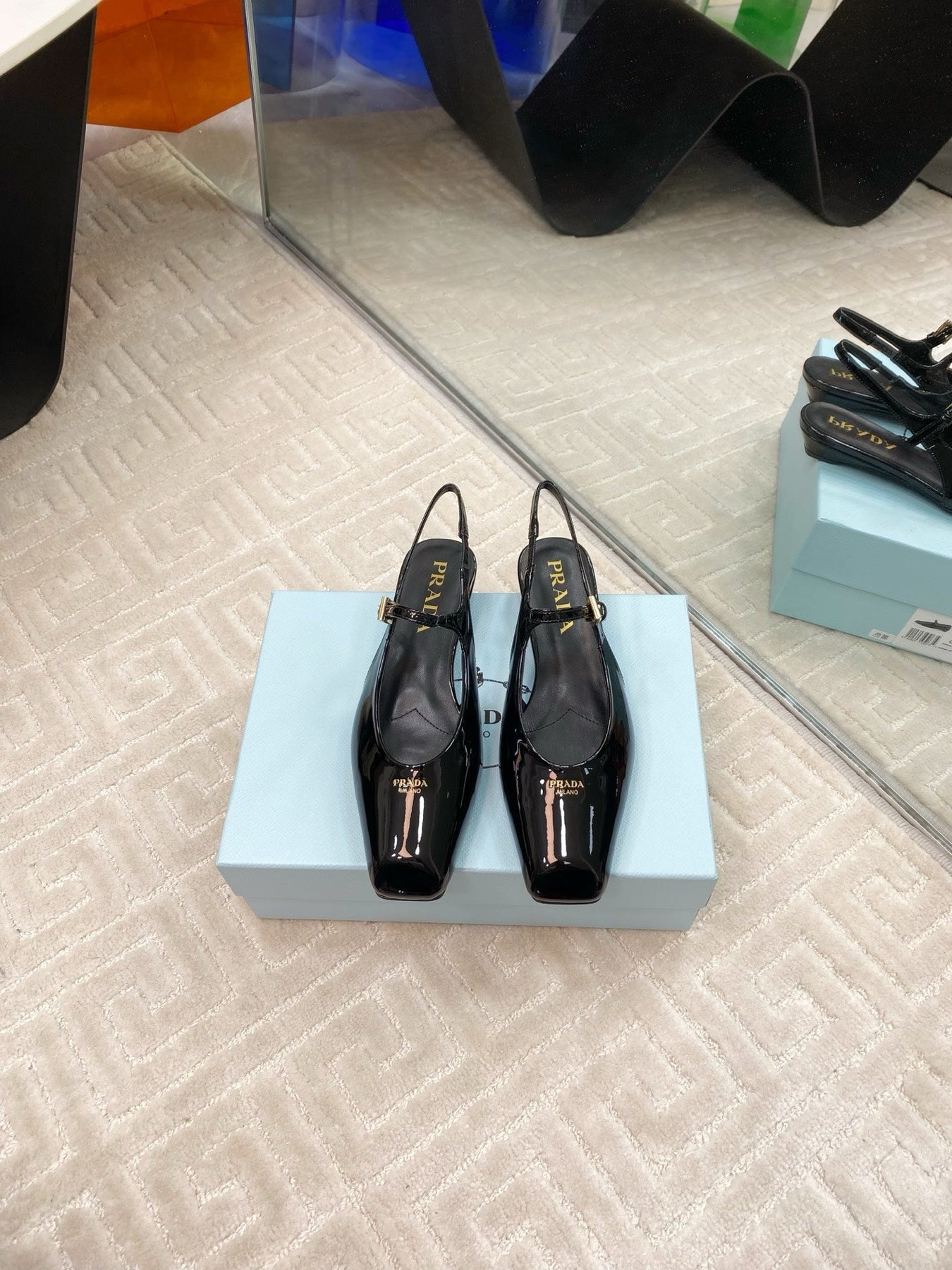 MARY JANE SLINGBACK SQUARE TOE IN BLACK PATENT SHEEPSKIN