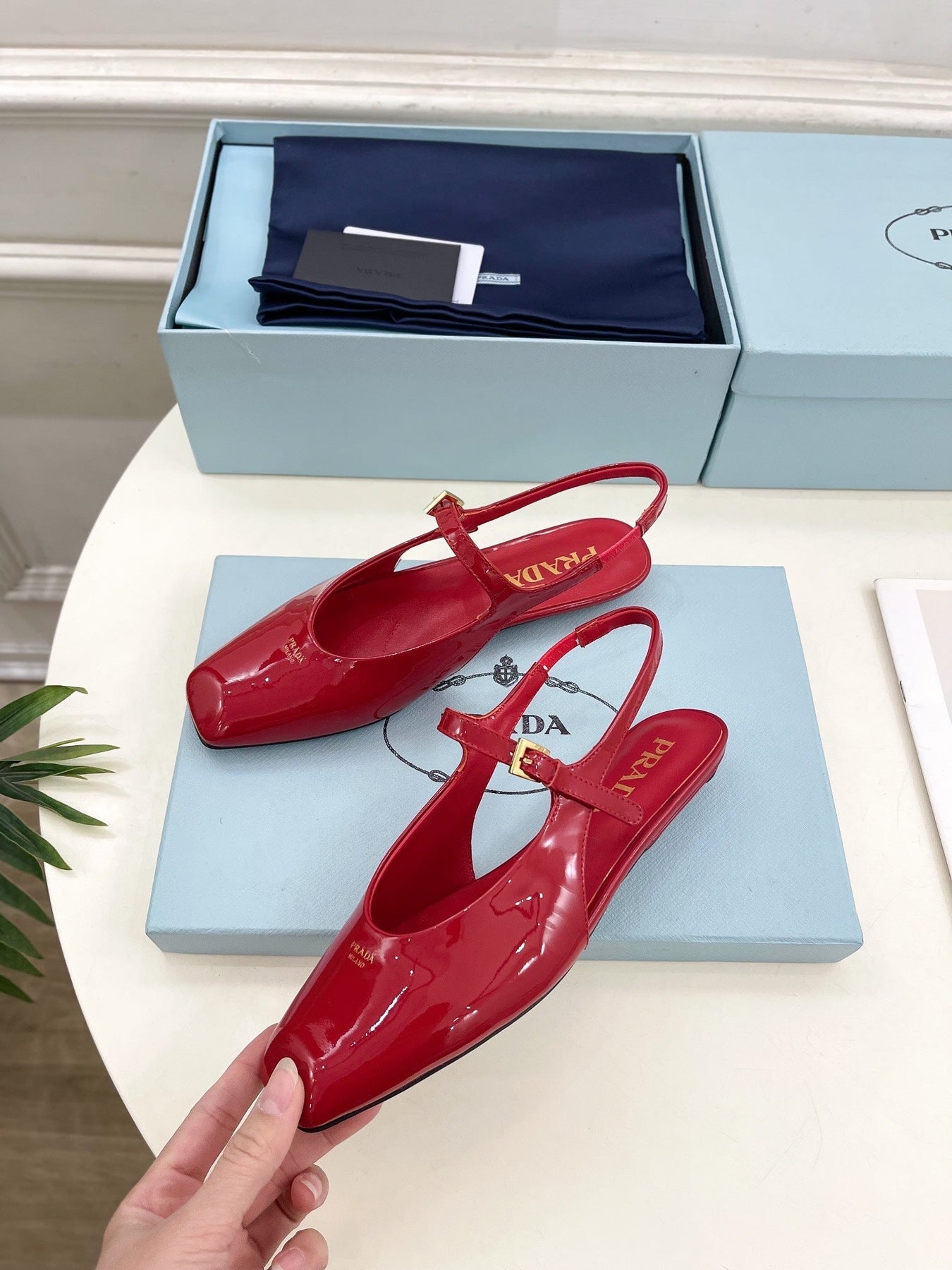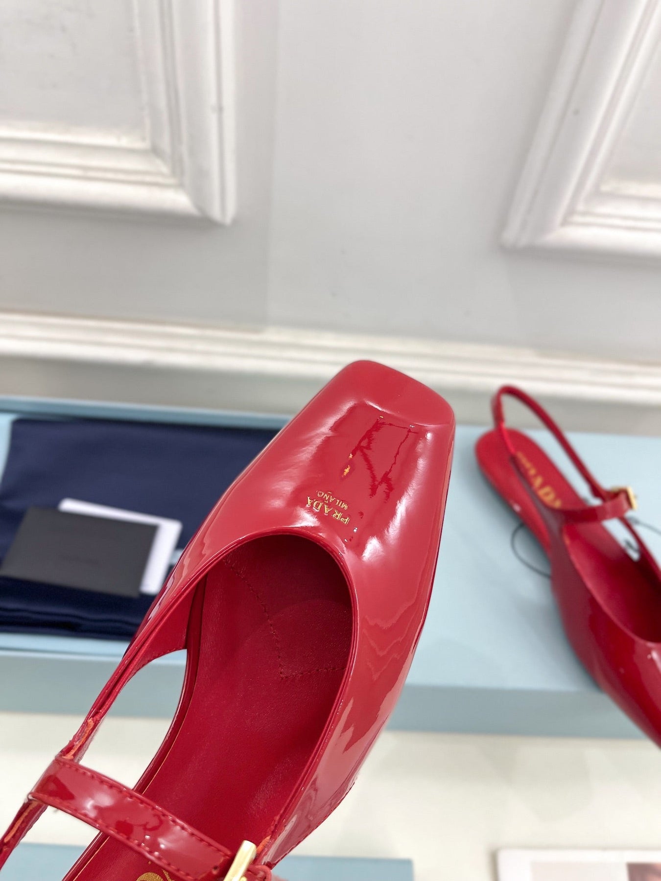 MARY JANE SLINGBACK SQUARE TOE IN CRIMSON RED PATENT SHEEPSKIN