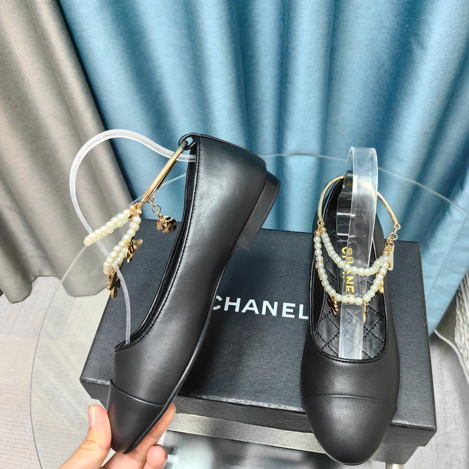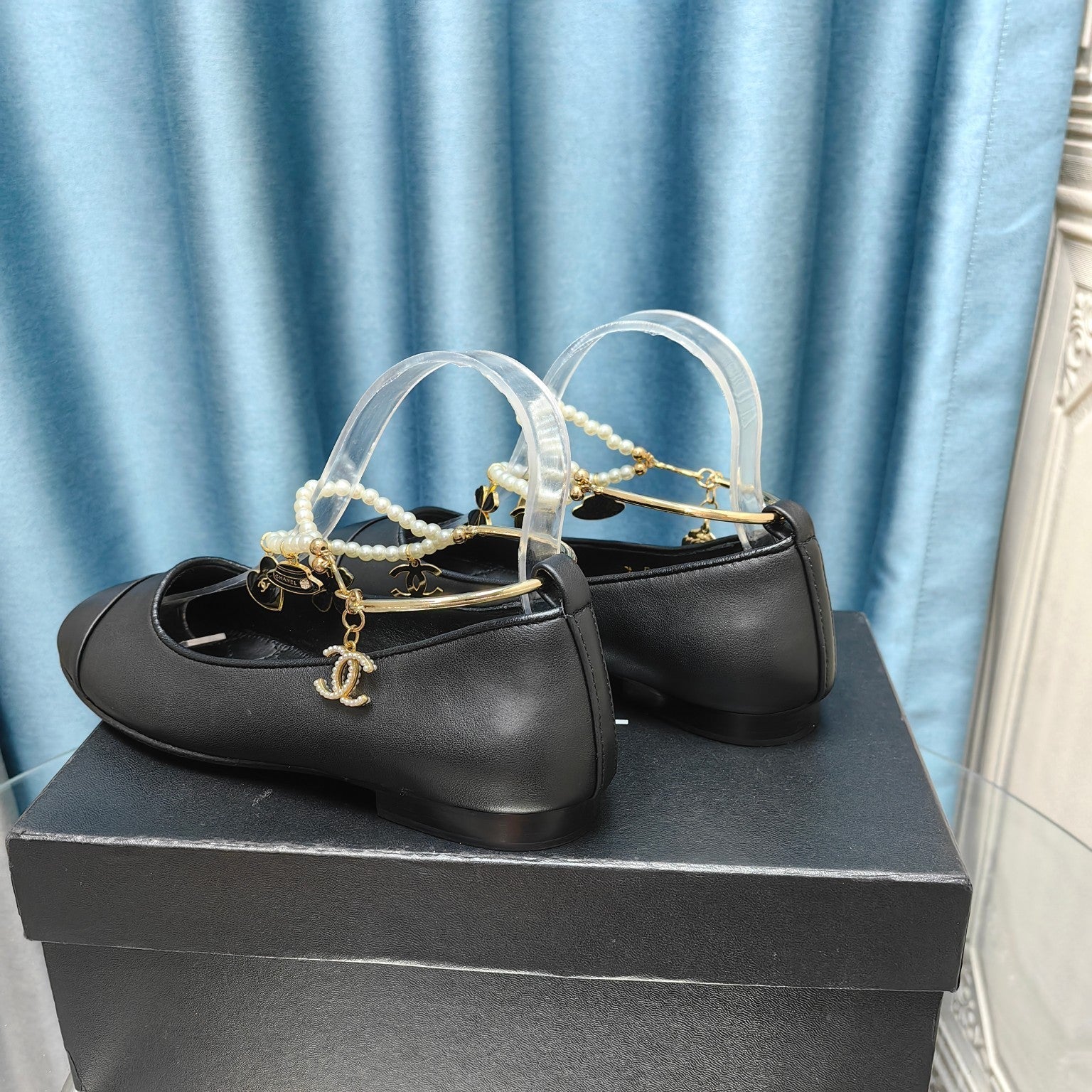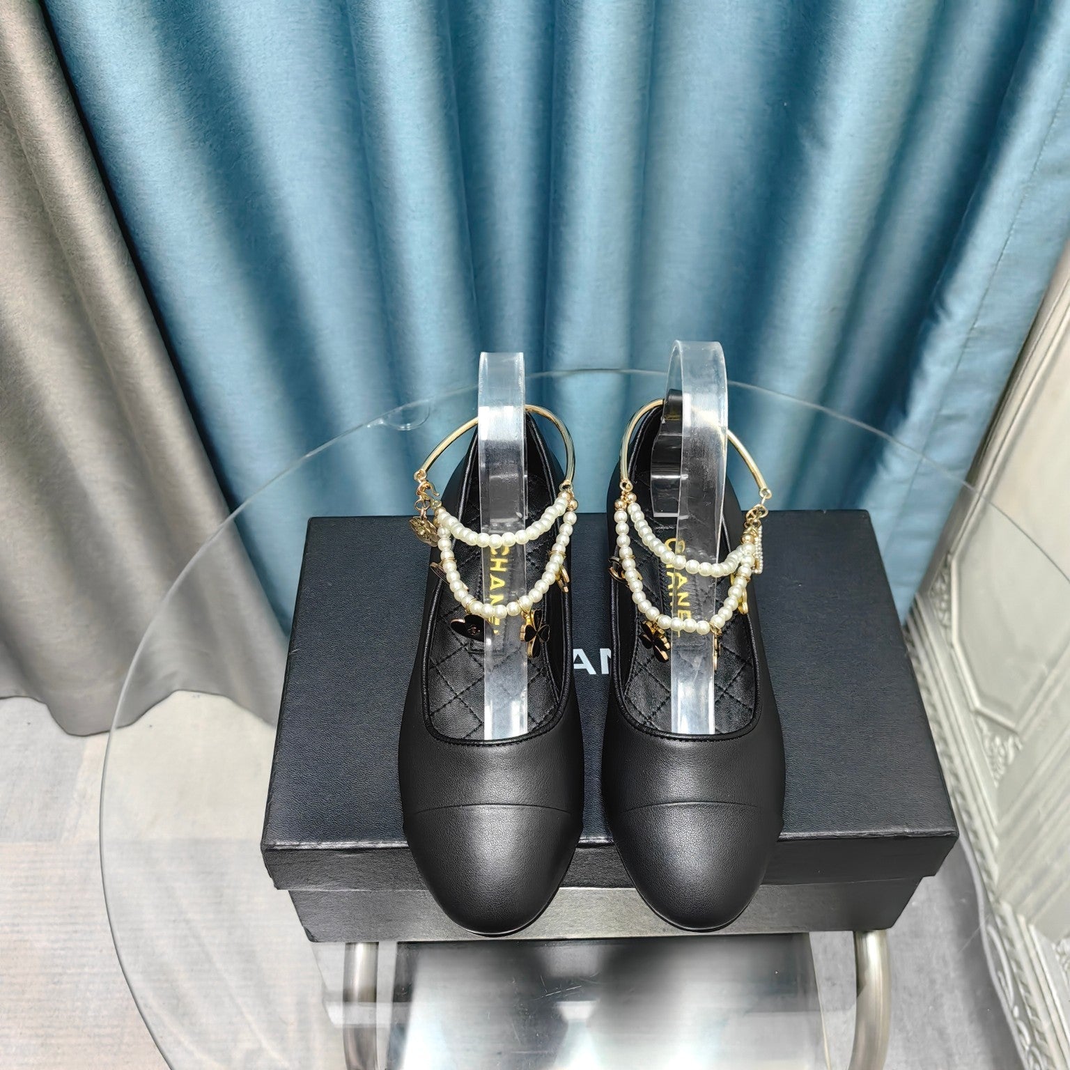 MARY JANE WITH PEARL STRAP IN BLACK LAMBSKIN
