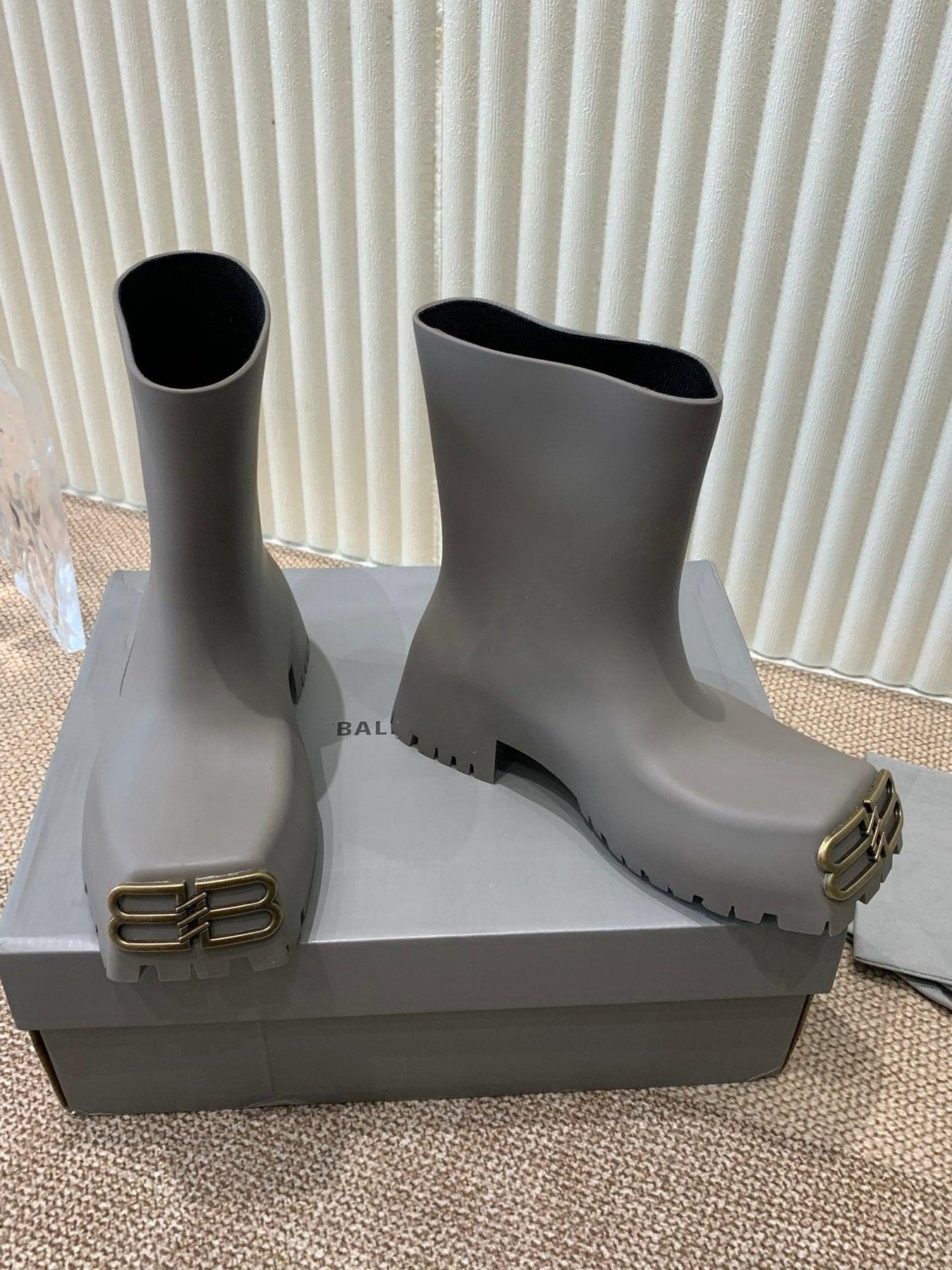 MATTE GRAY SCULPTED RUBBER BOOTS WITH GOLD MONOGRAM