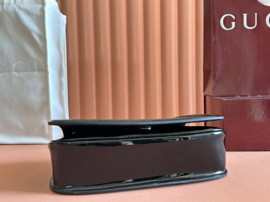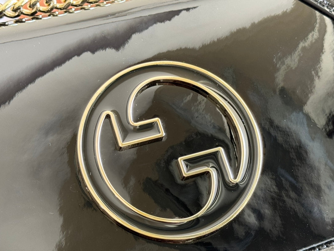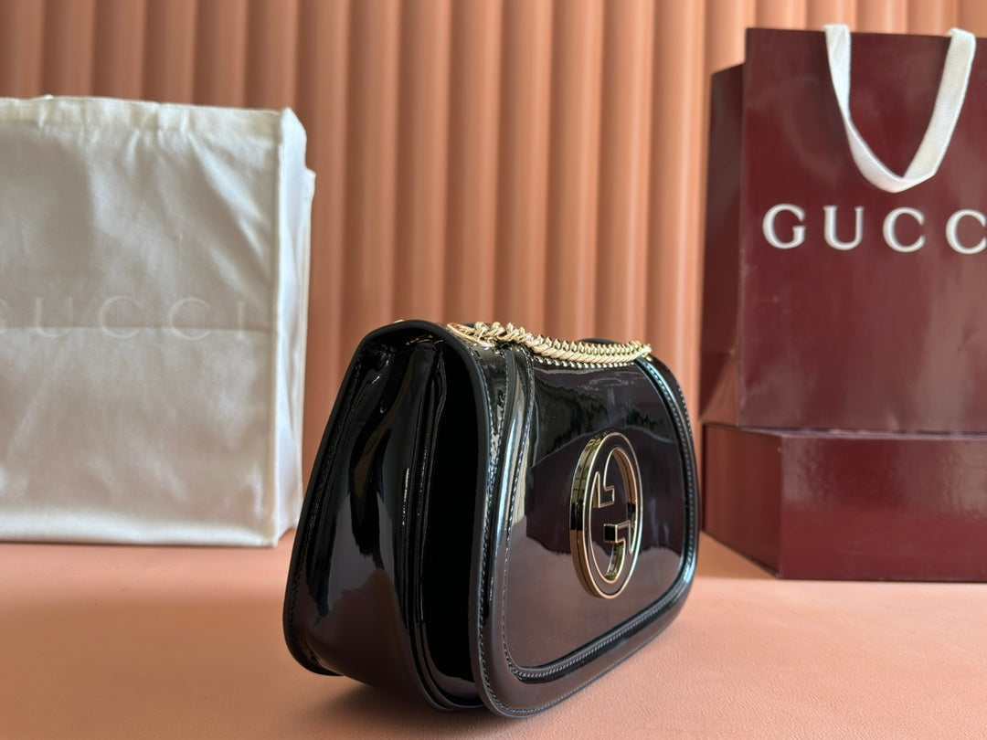 MEDIUM BLONDIE SHOULDER BAG 26.5 IN BLACK PATENT CALFSKIN