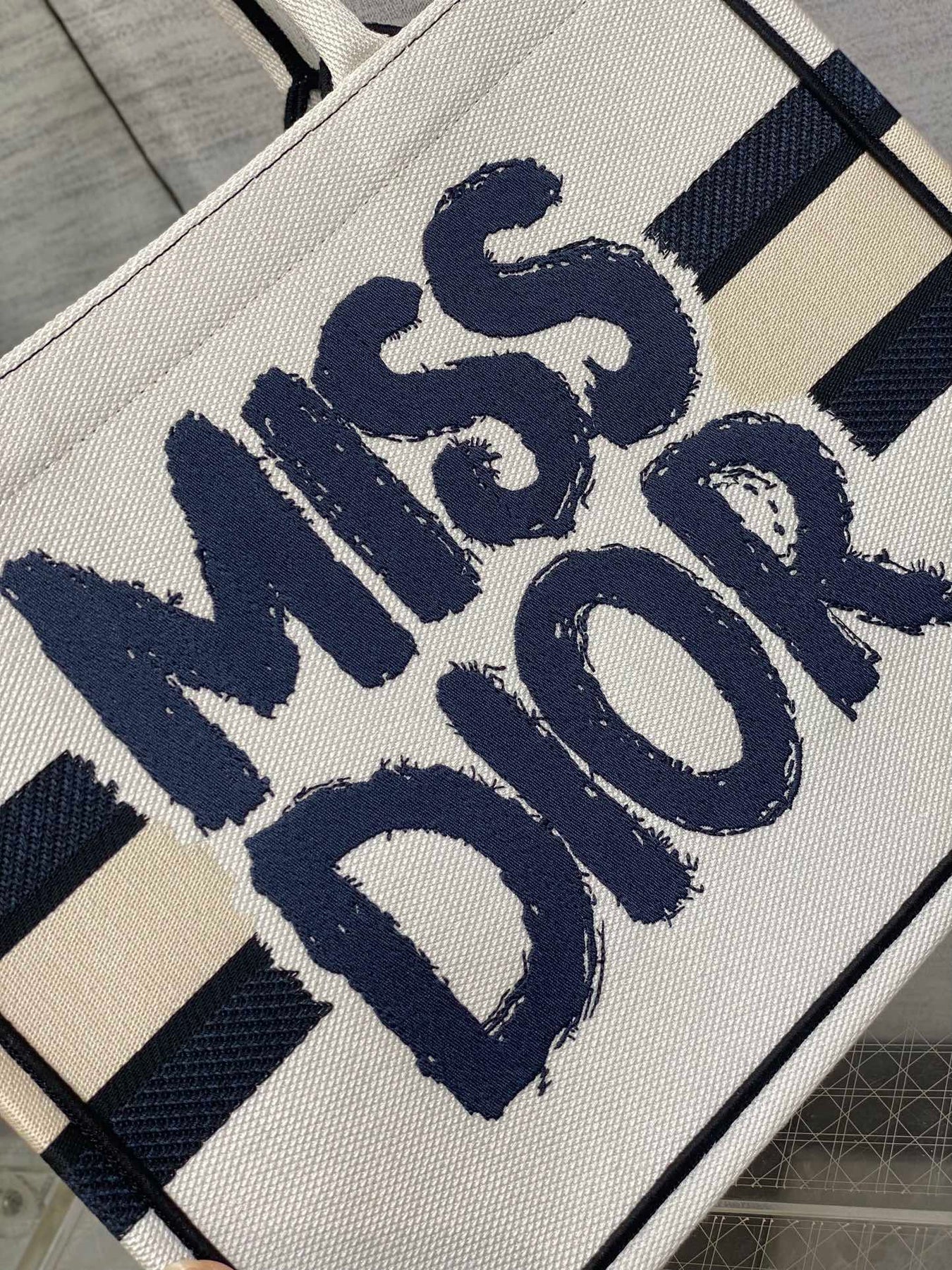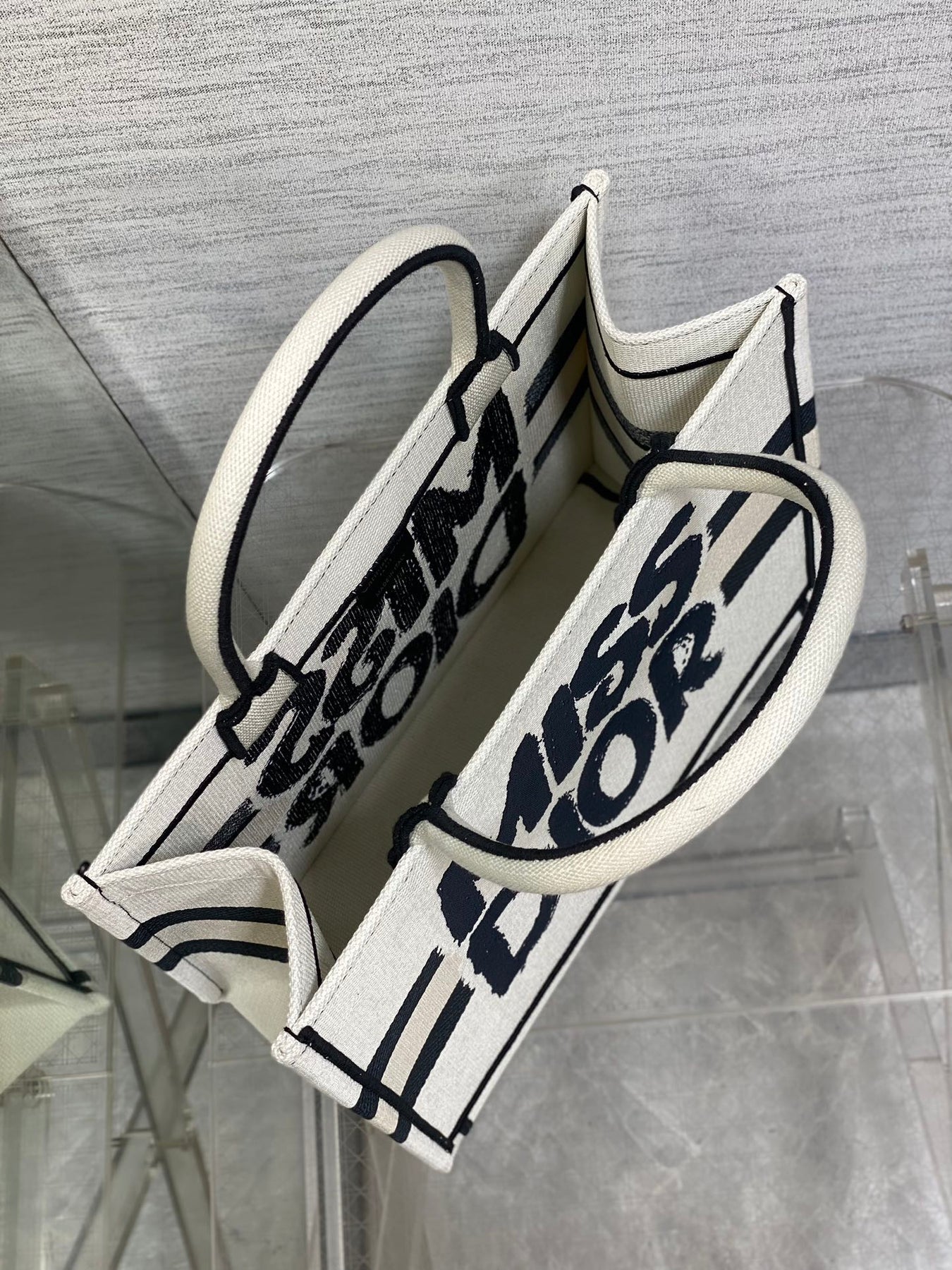 MEDIUM BOOK TOTE 36 IN WHITE MIX BLACK CANVAS 226504