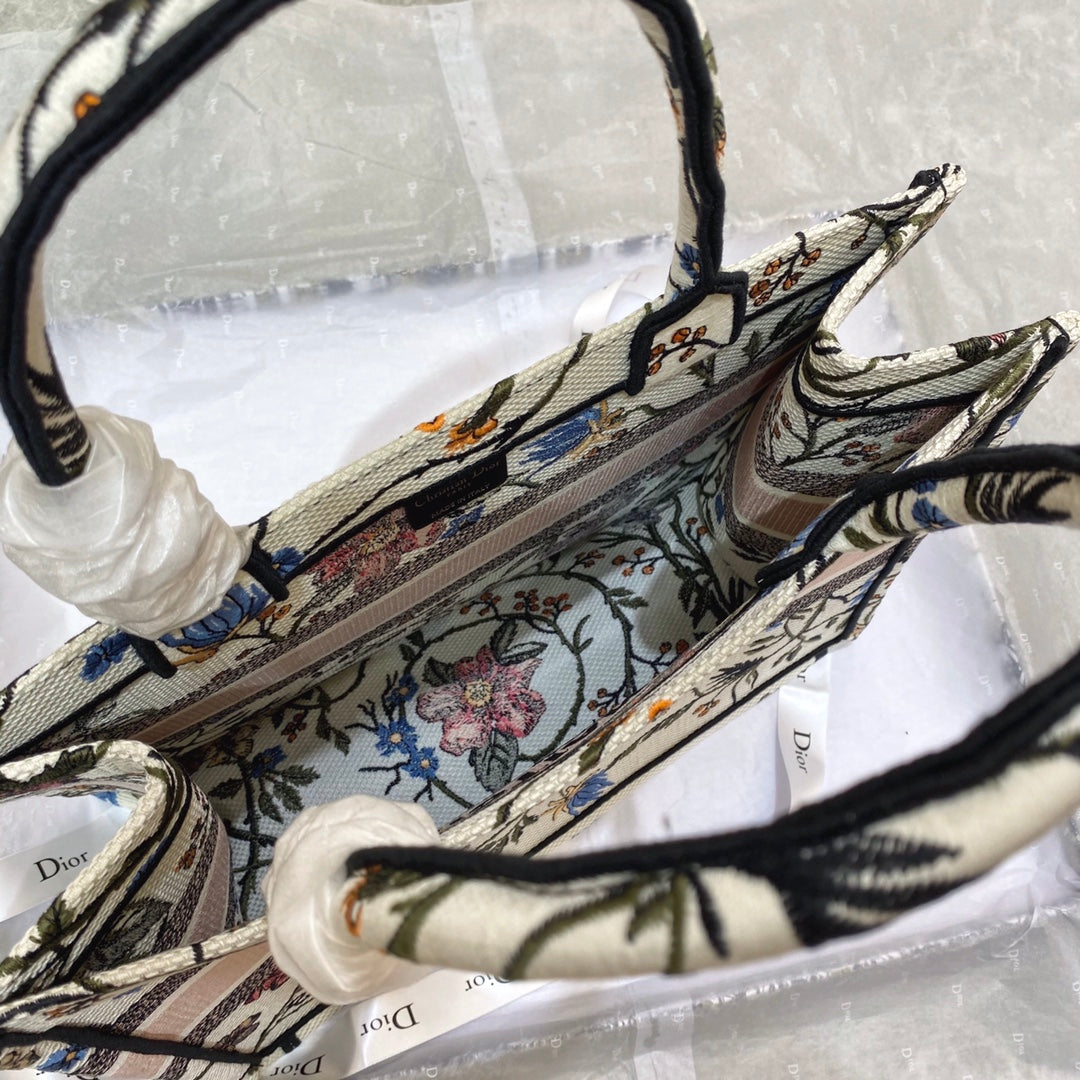 MEDIUM BOOK TOTE BAG 36 IN BEIGE COTTON WITH MULTICOLOR EMBROIDERY