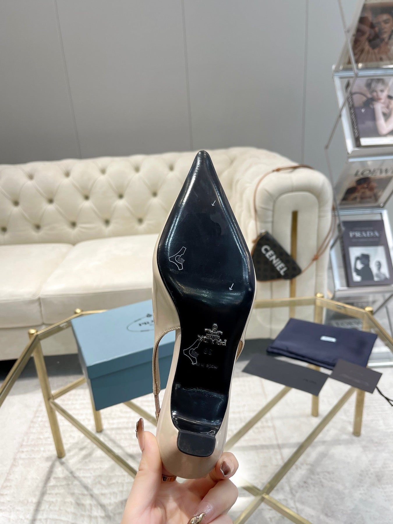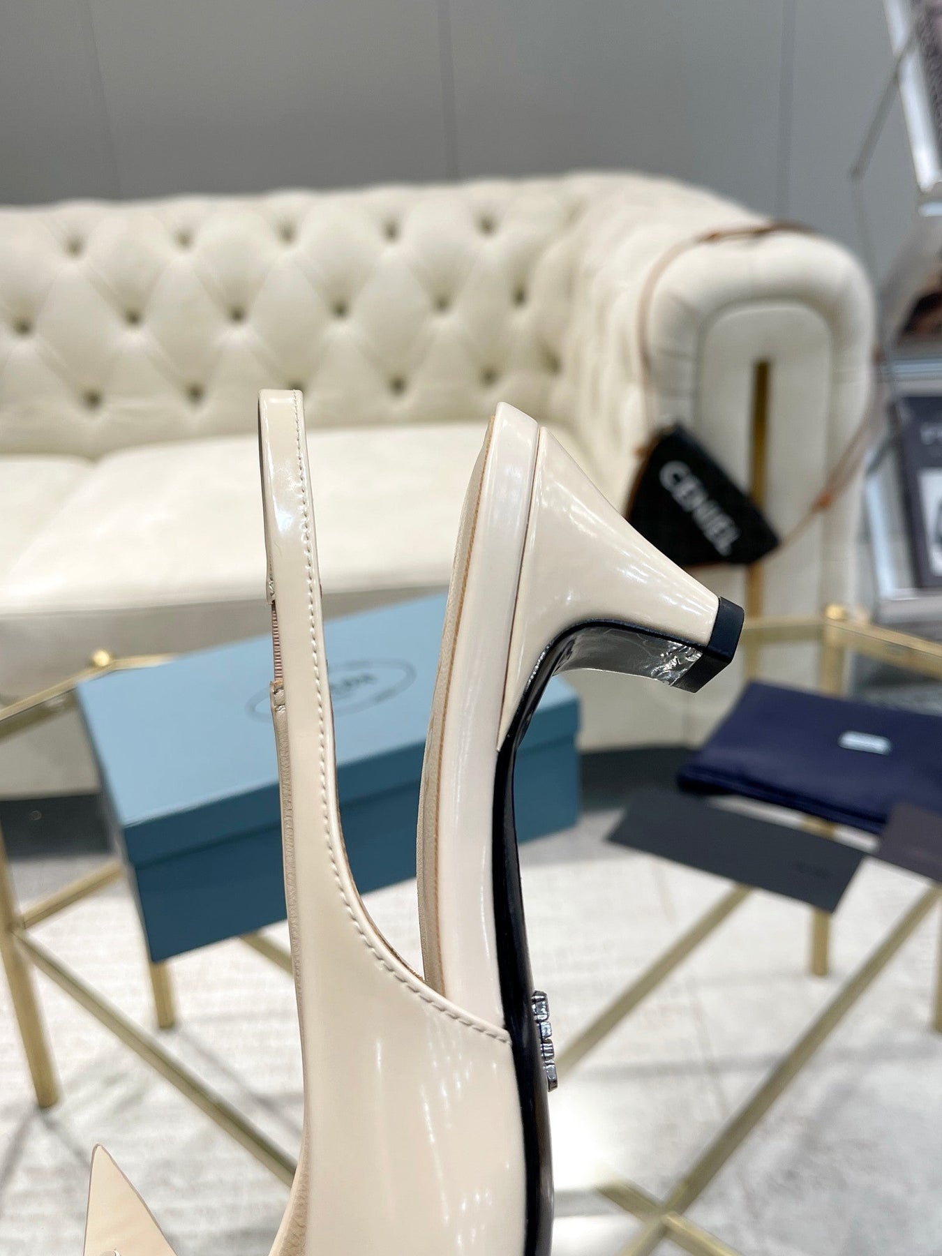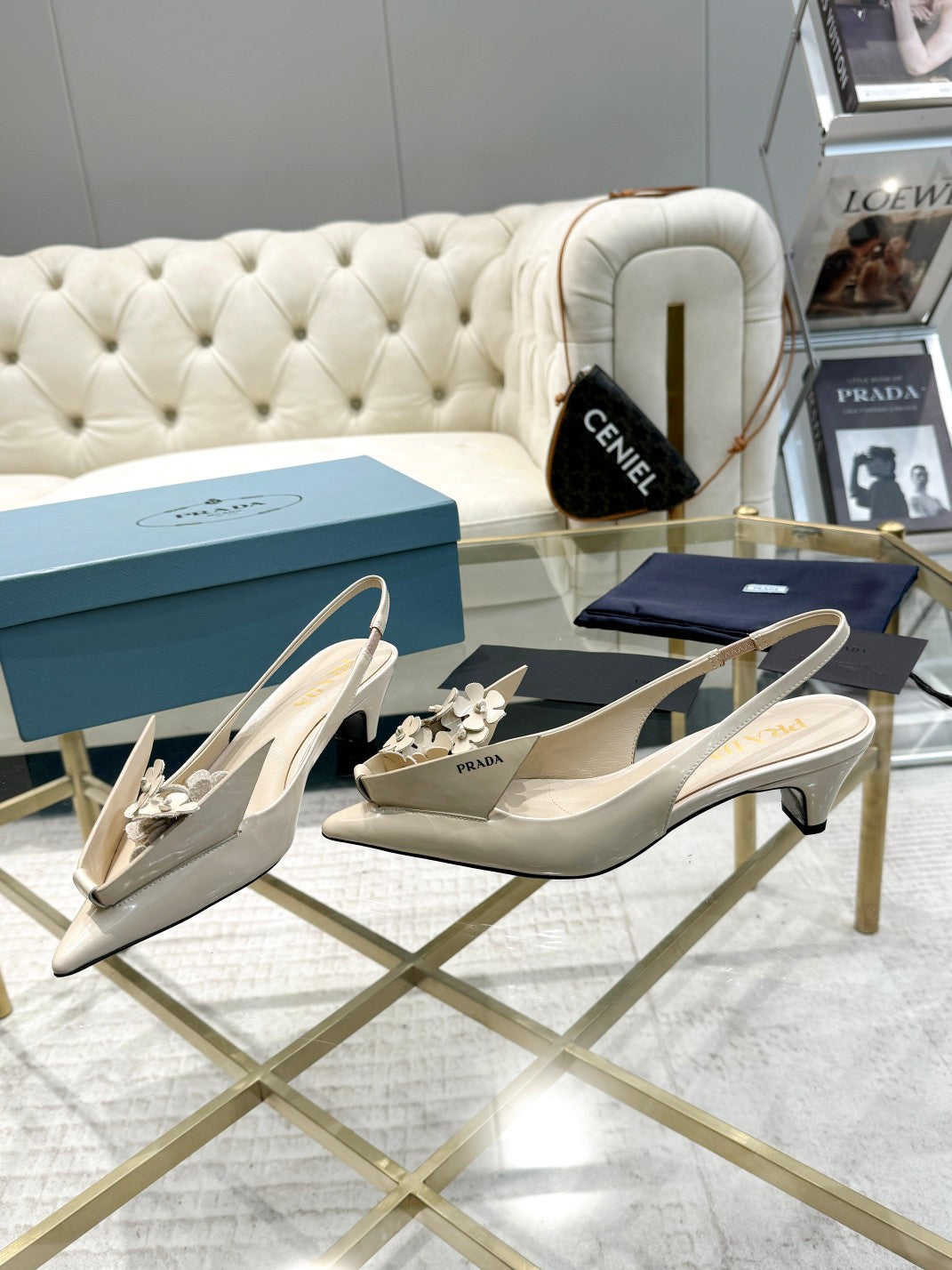 MEDIUM HEEL SLINGBACK ATTACHED CREATIVE FLOWERS IN BEIGE PATENT CALFSKIN