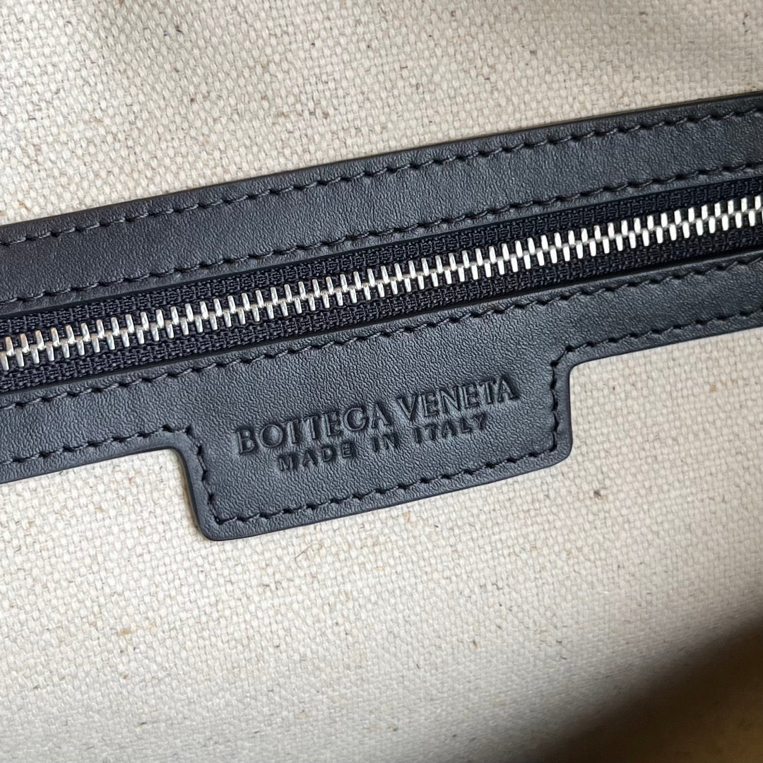 MEDIUM INTRECCIATO 50 CABIN DUFFLE IN BLACK WHITE CALFSKIN
