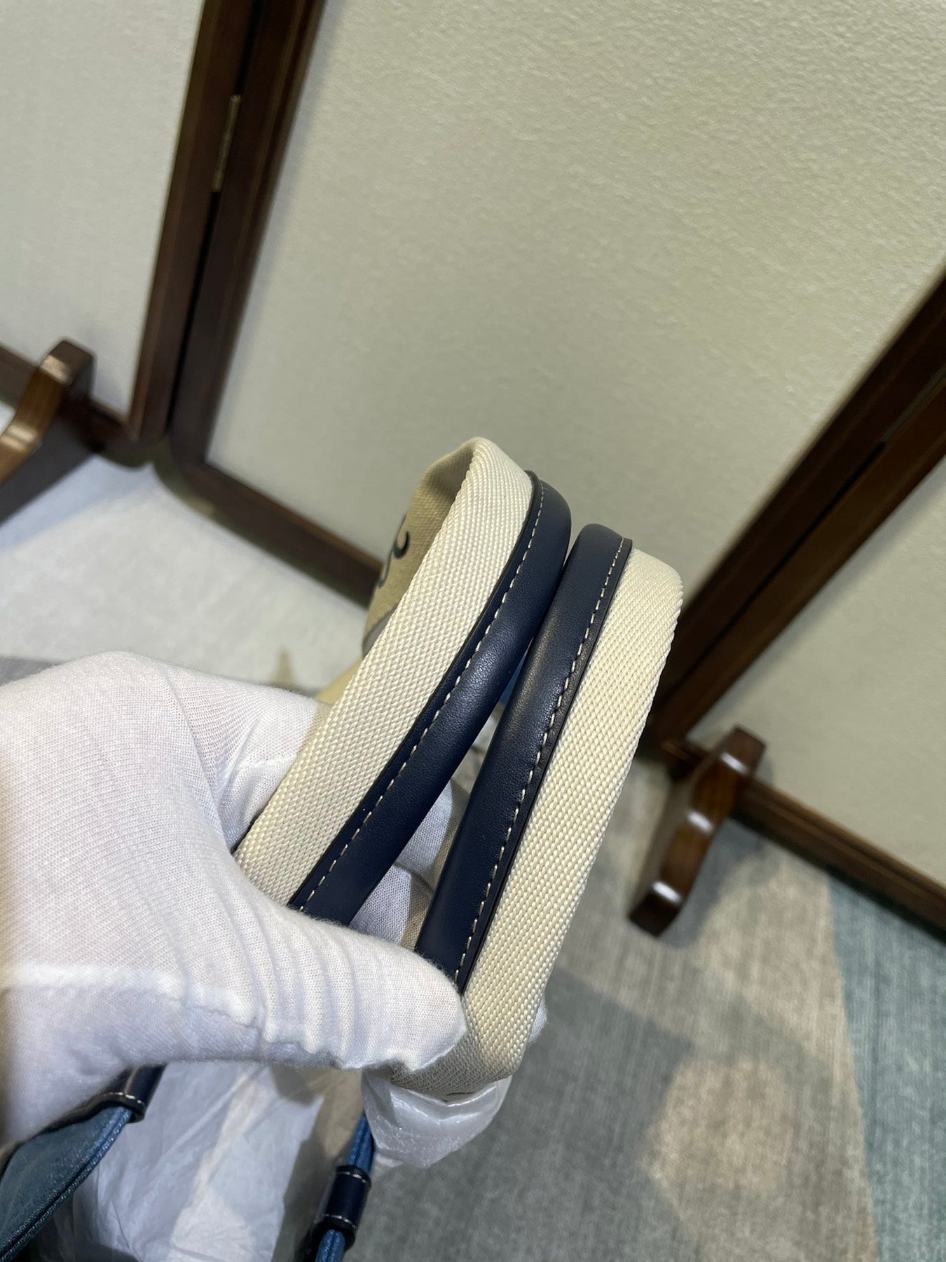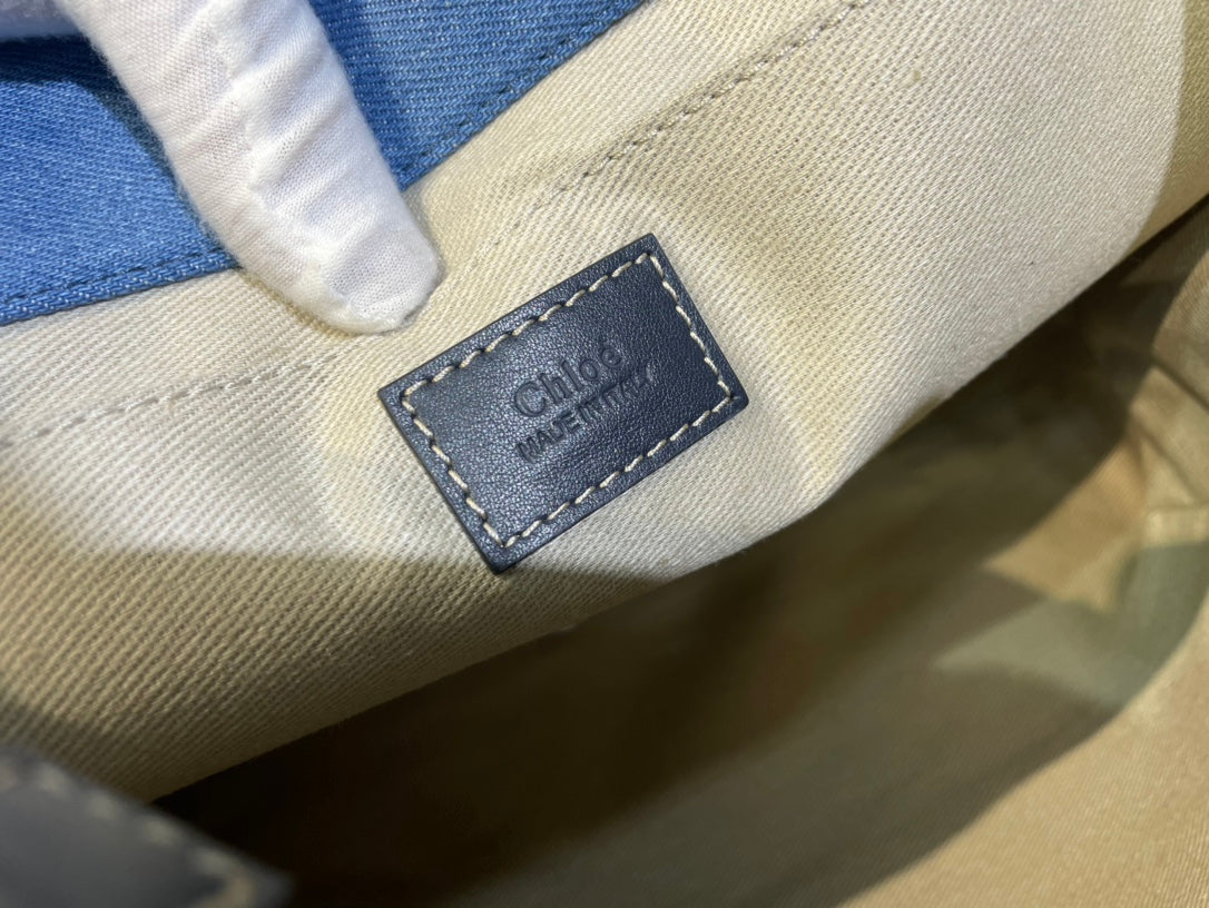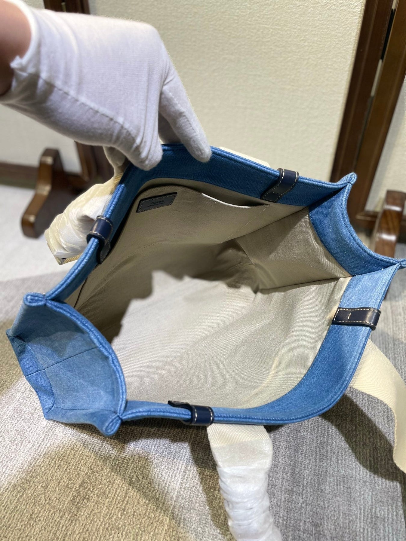 MEDIUM STRAP WOODY TOTE BAG 37 IN BLUE DENIM CANVAS DARK BLUE CALFSKIN